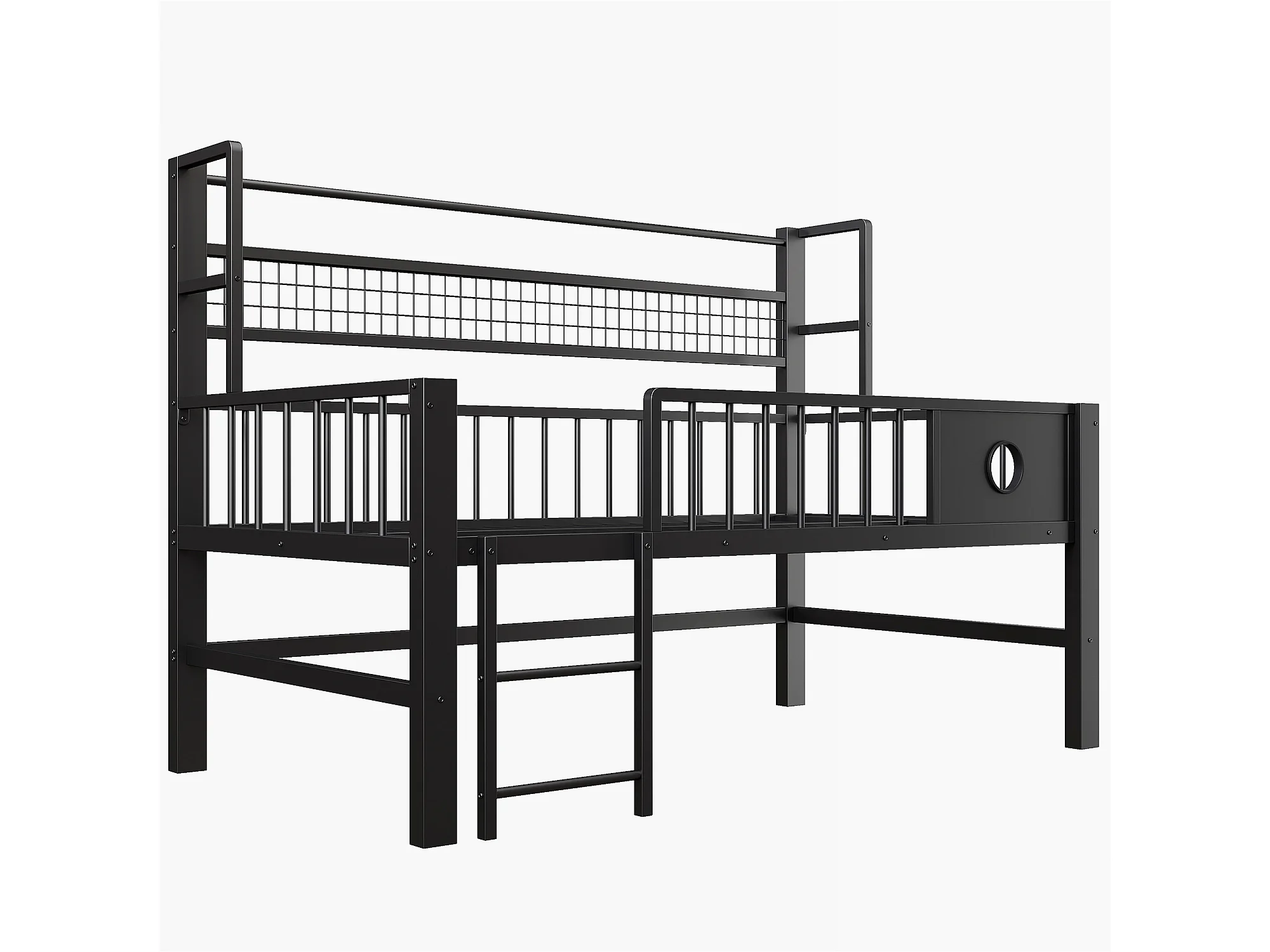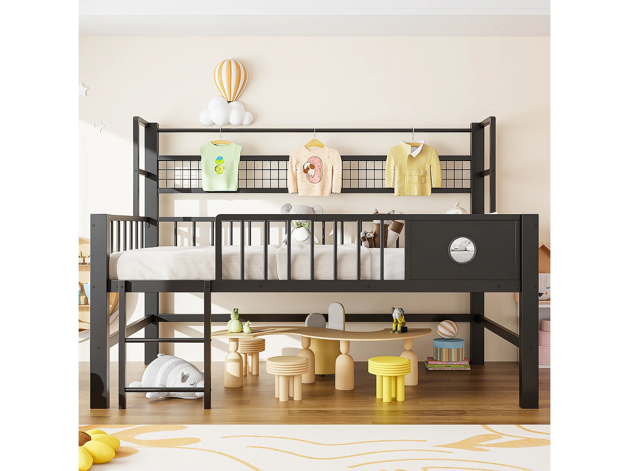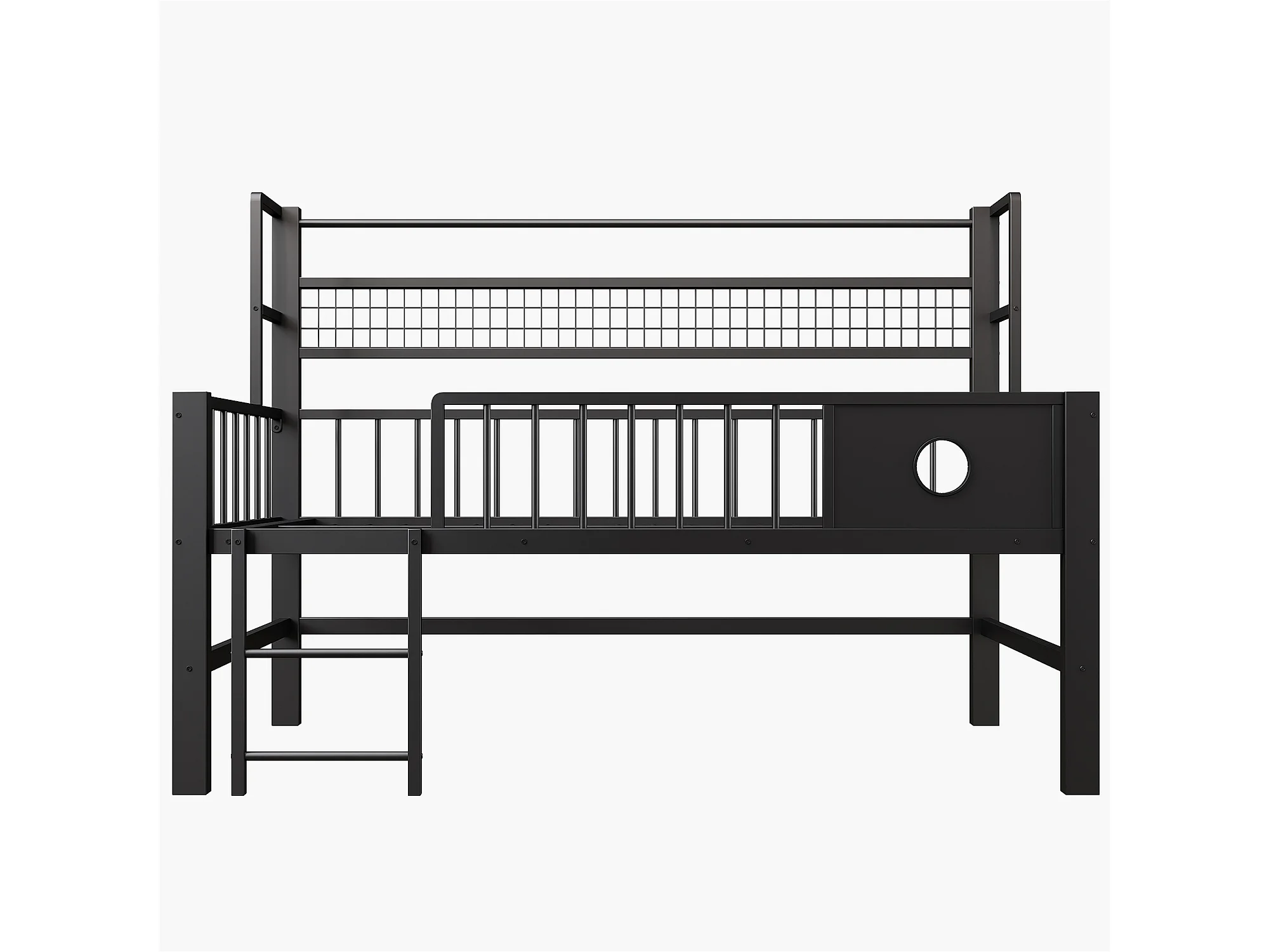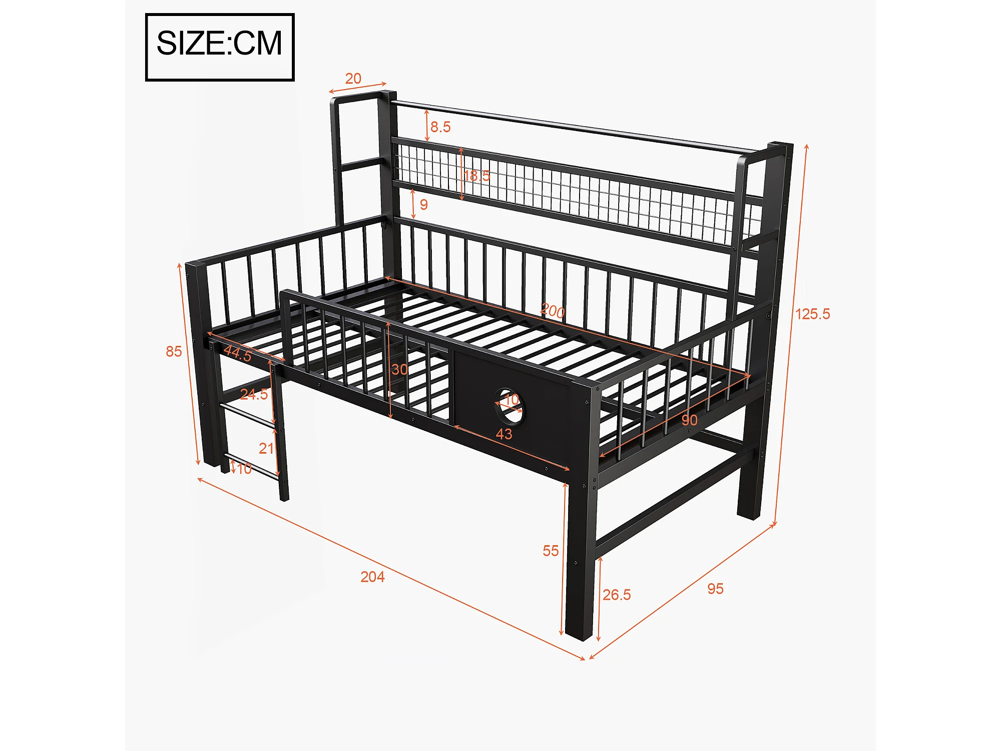 Lit enfant 90x200cm - Cadre en métal - Avec compartiments de rangement - Noir (matelas non inclus)