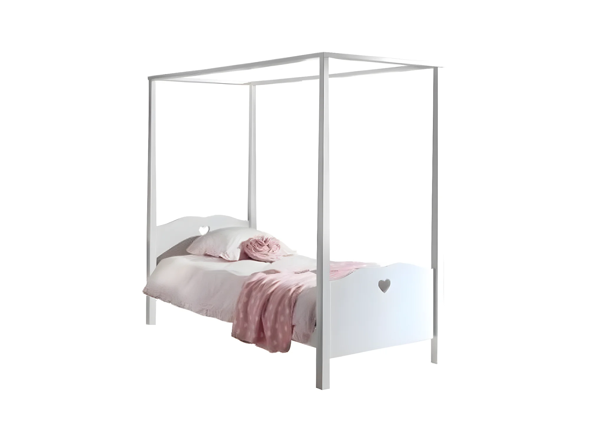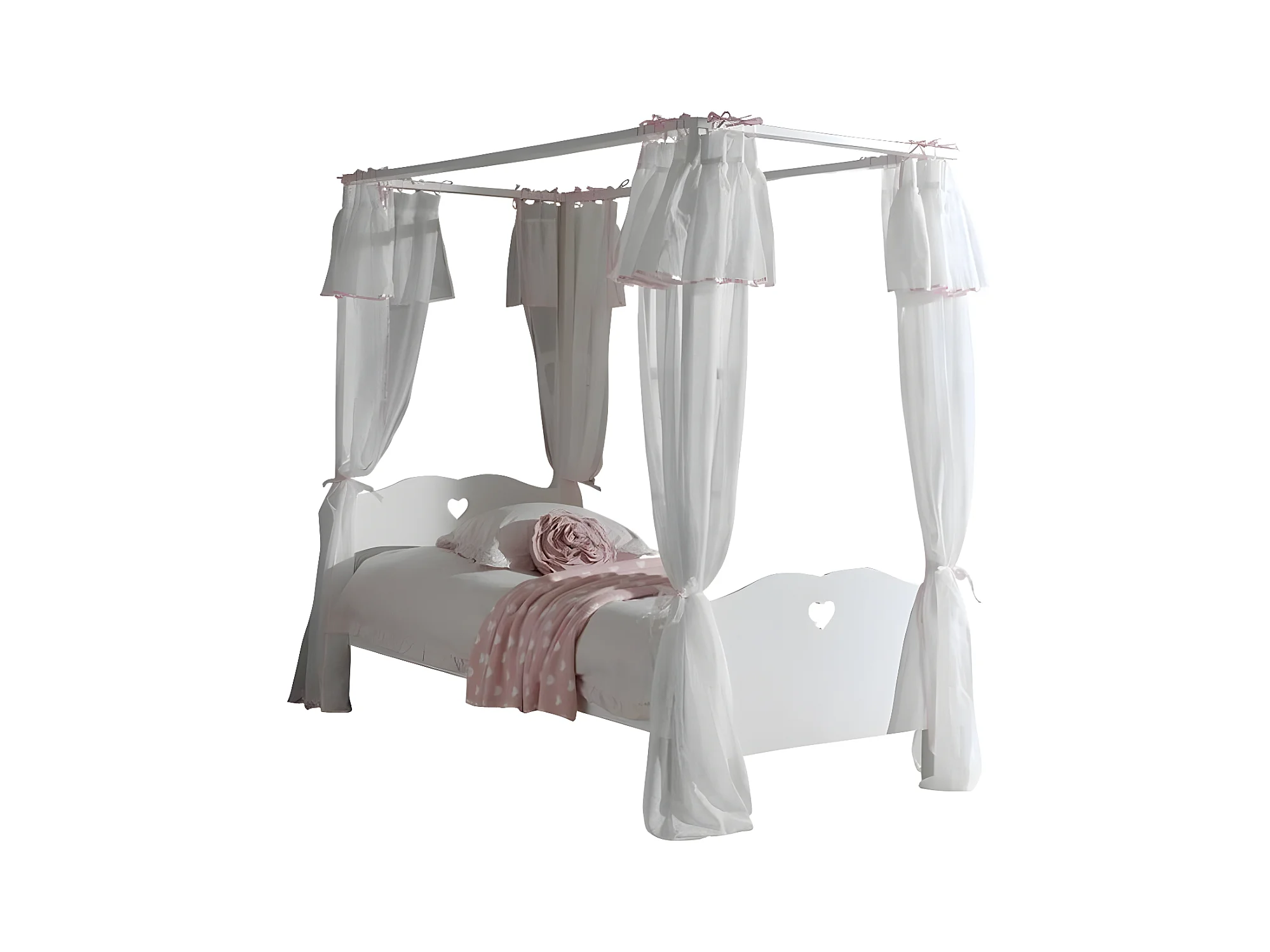 Lit Enfant à Baldaquin & Voile "Amori" 90x200cm Blanc