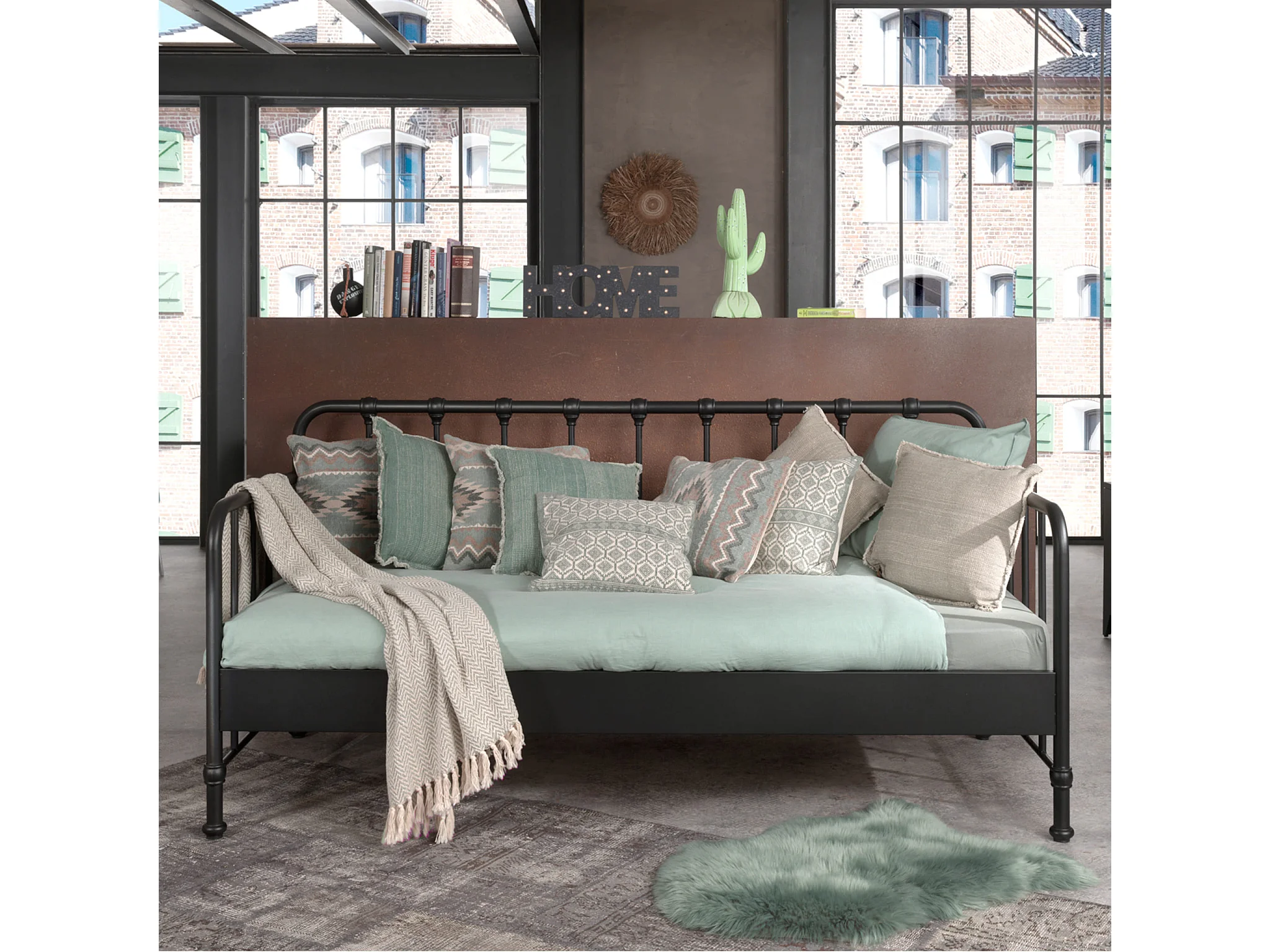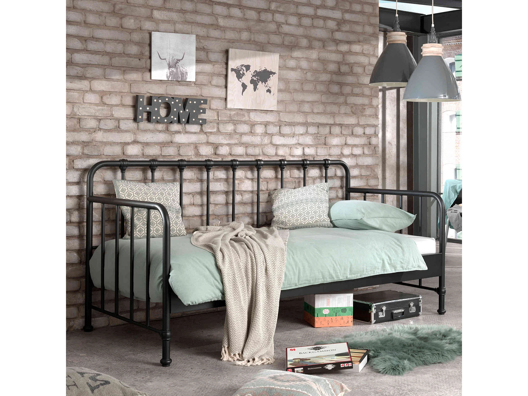 Lit enfant banquette à barreaux en métal 90x200 cm - LT2060
