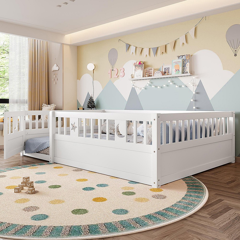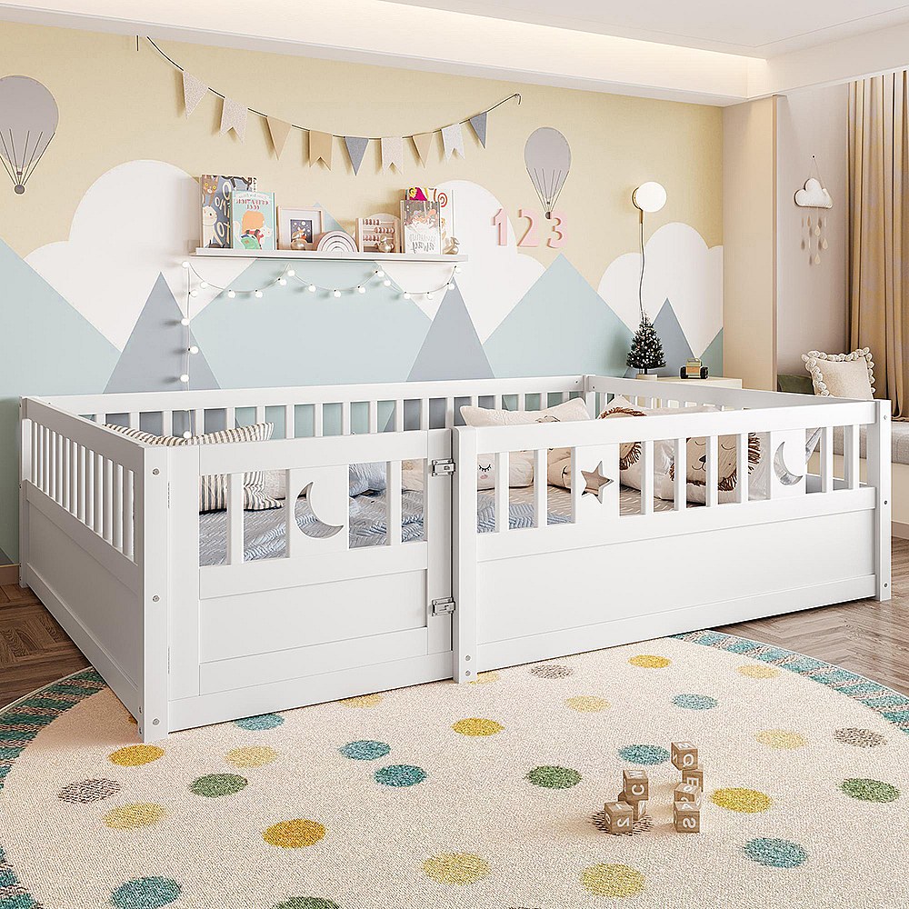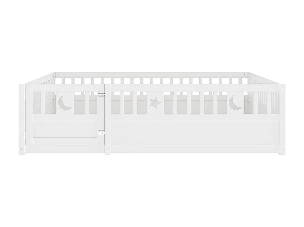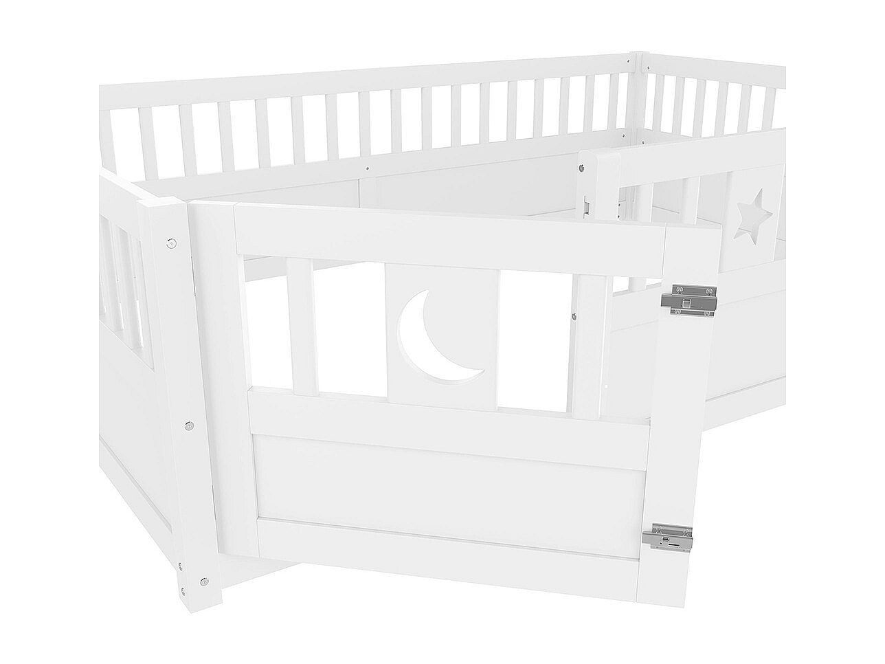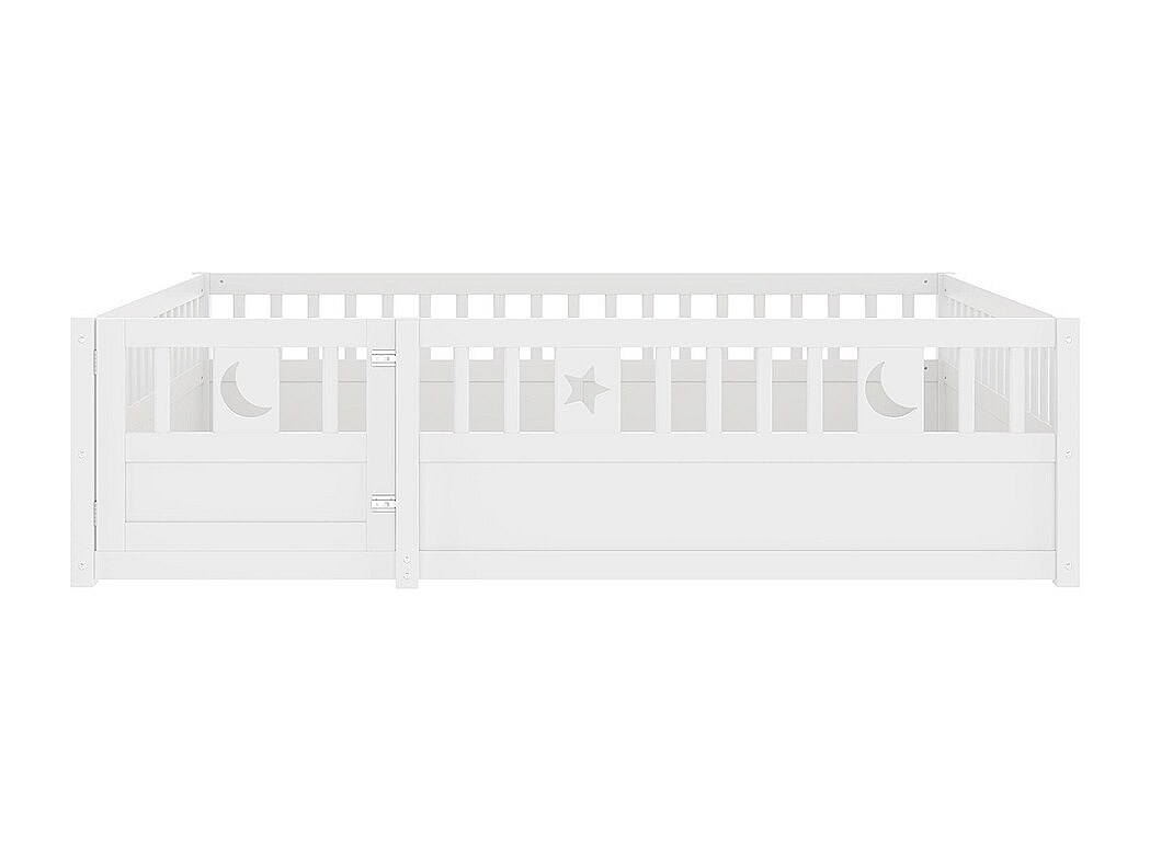 Lit enfant à panneaux 140x190 cm barrières décor étoiles lune sans sommier sans matelas blanc