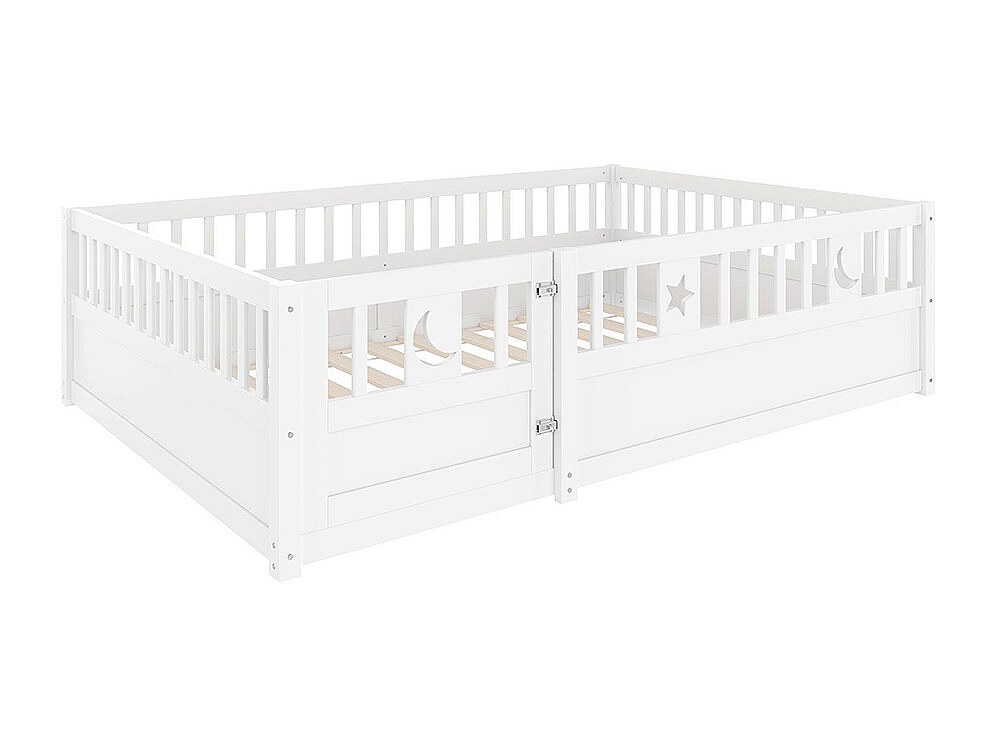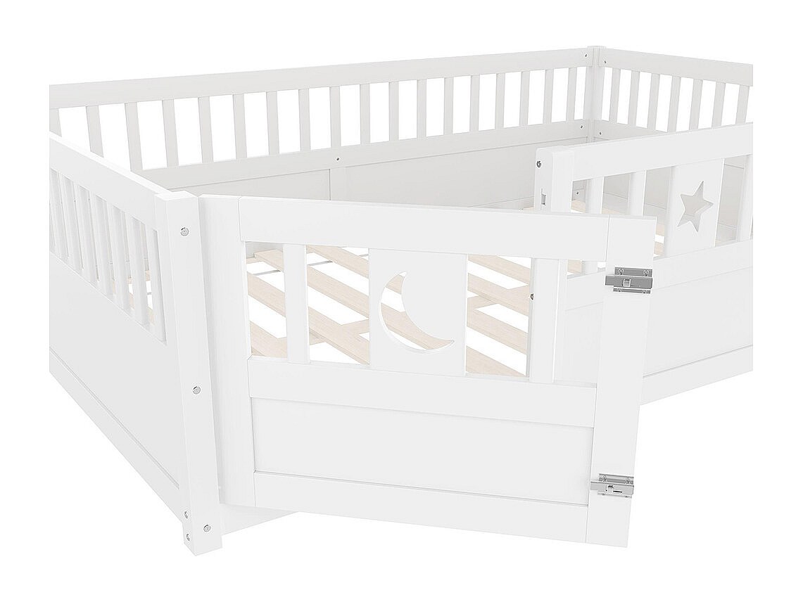 Lit enfant à panneaux 140x190 cm barrières décor étoiles lunes sans matelas blanc