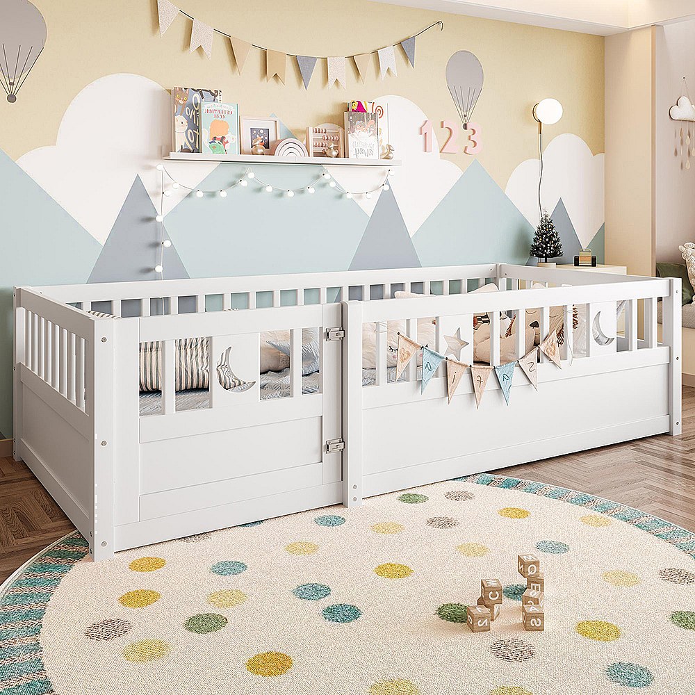 Lit enfant à panneaux 90x190 cm barrières décor étoiles lune sans sommier sans matelas blanc