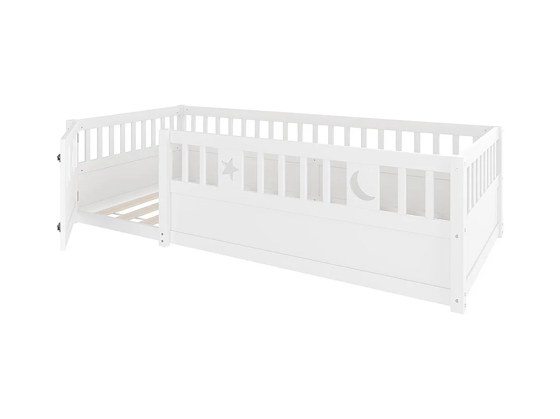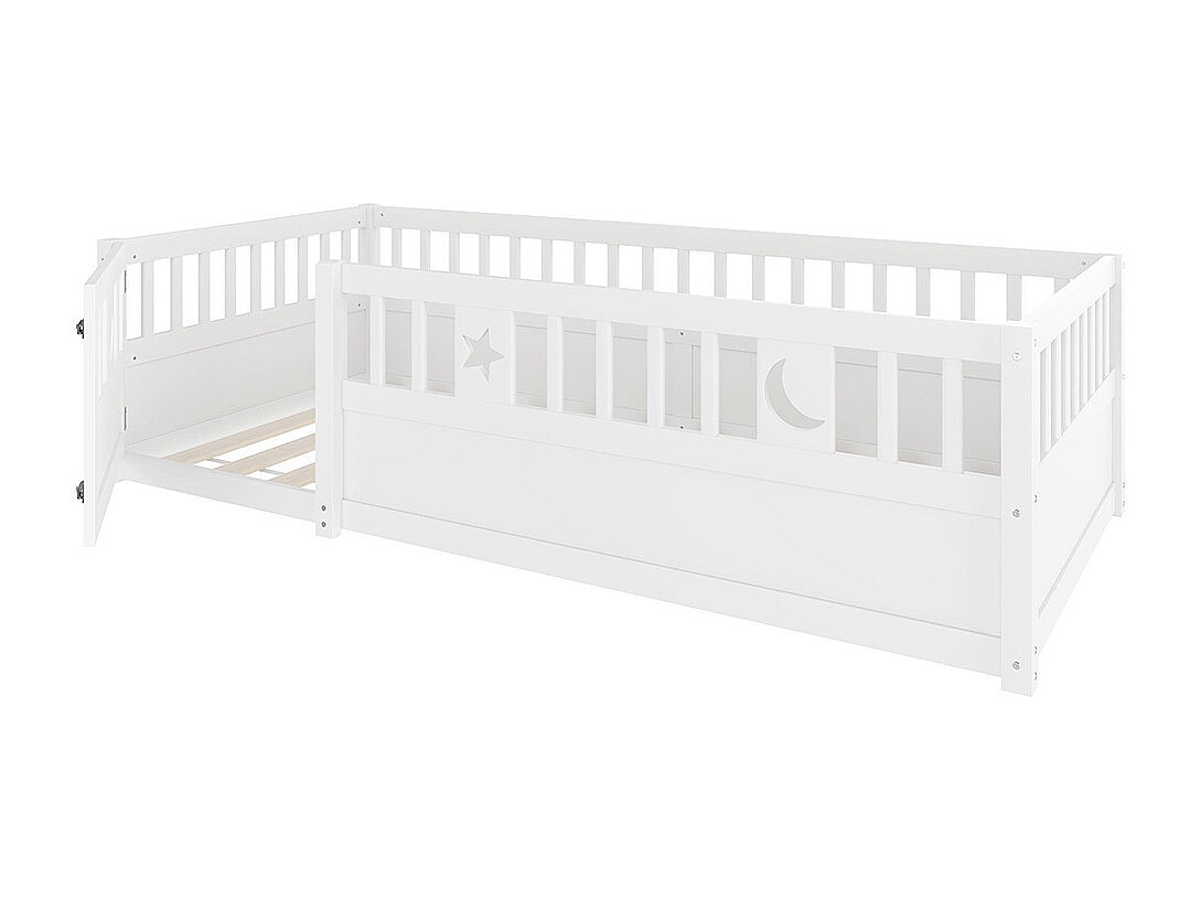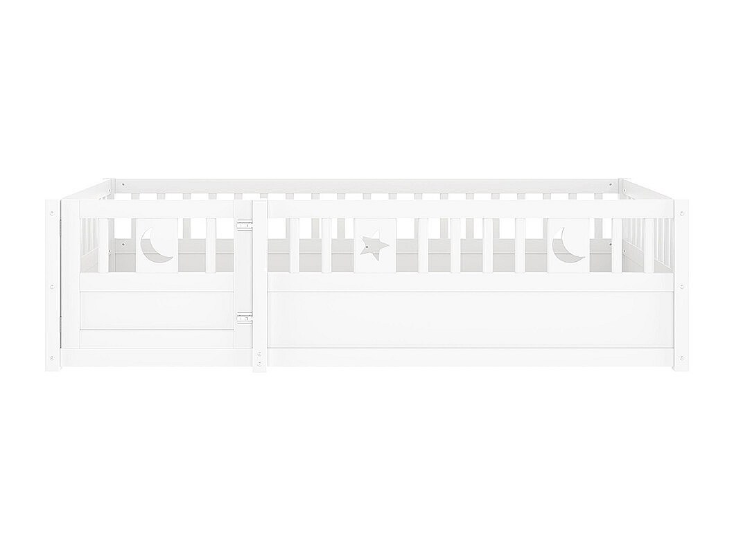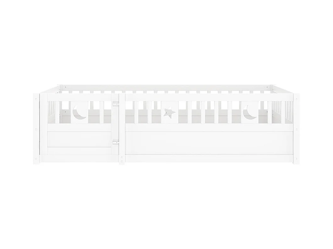 Lit enfant à panneaux 90x190 cm barrières décor étoiles lunes sans matelas blanc