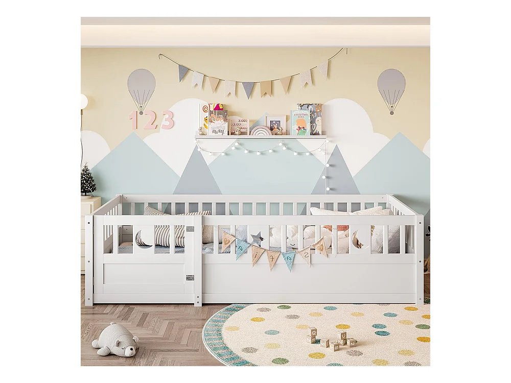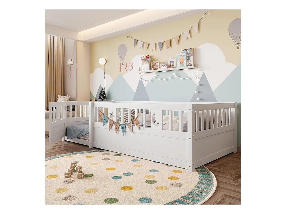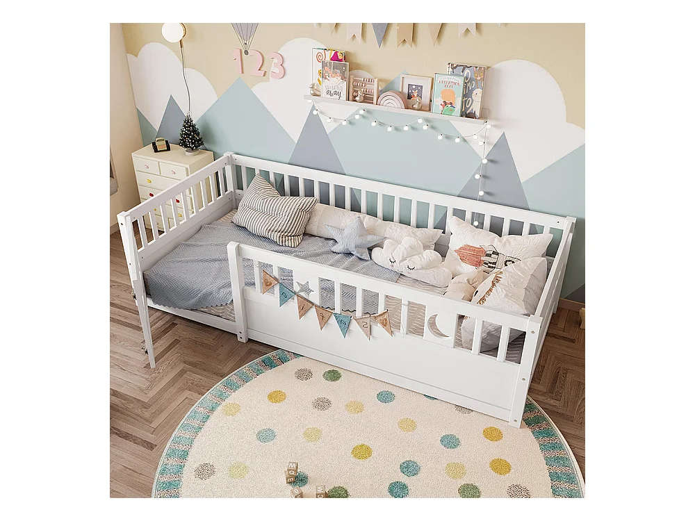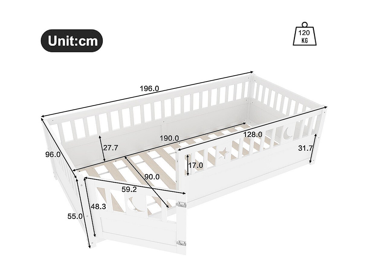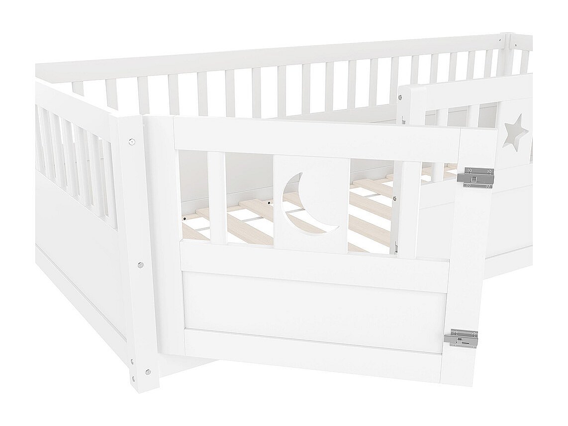 Lit enfant à panneaux 90x190 cm barrières décor étoiles lunes sans matelas blanc