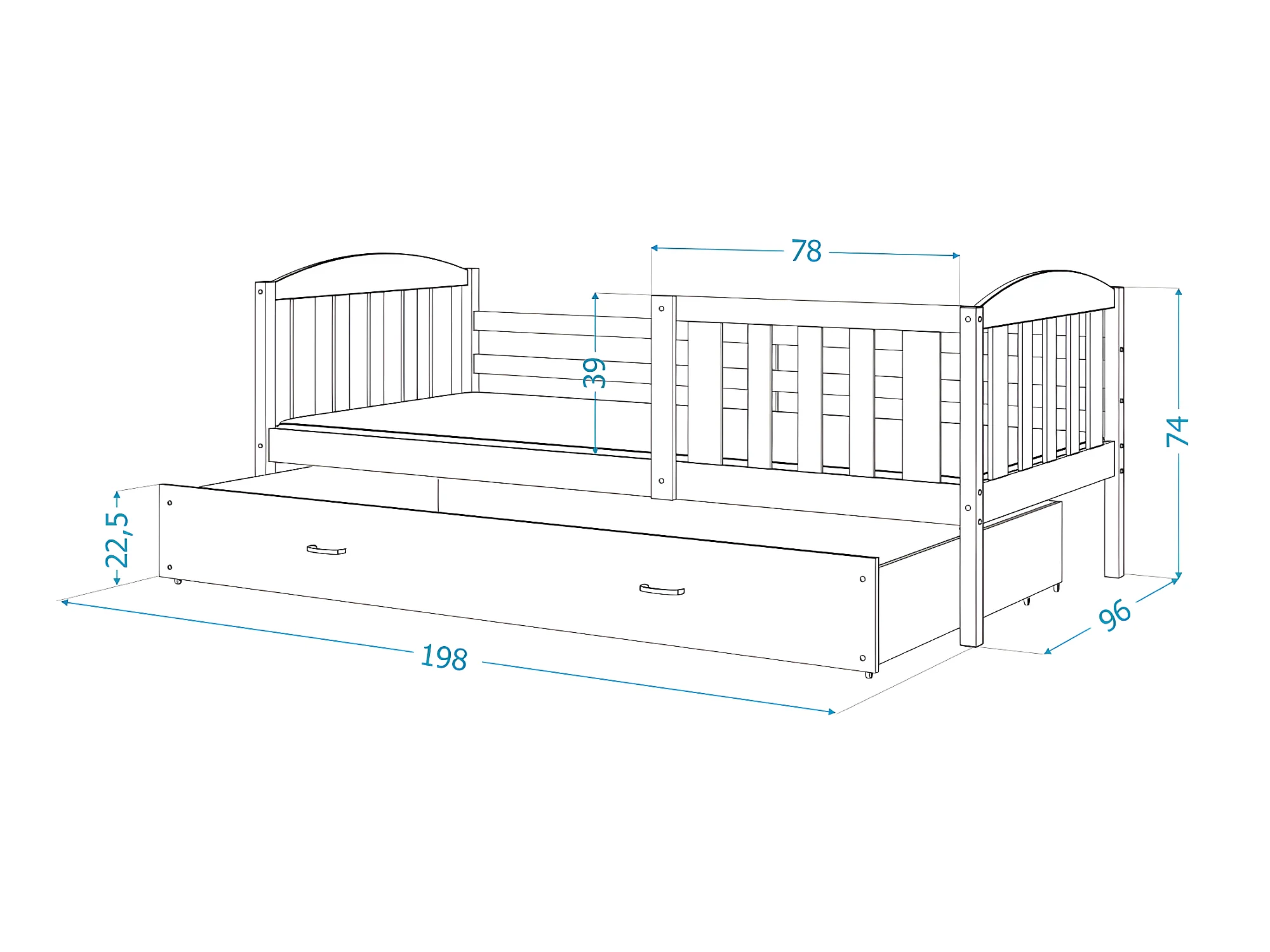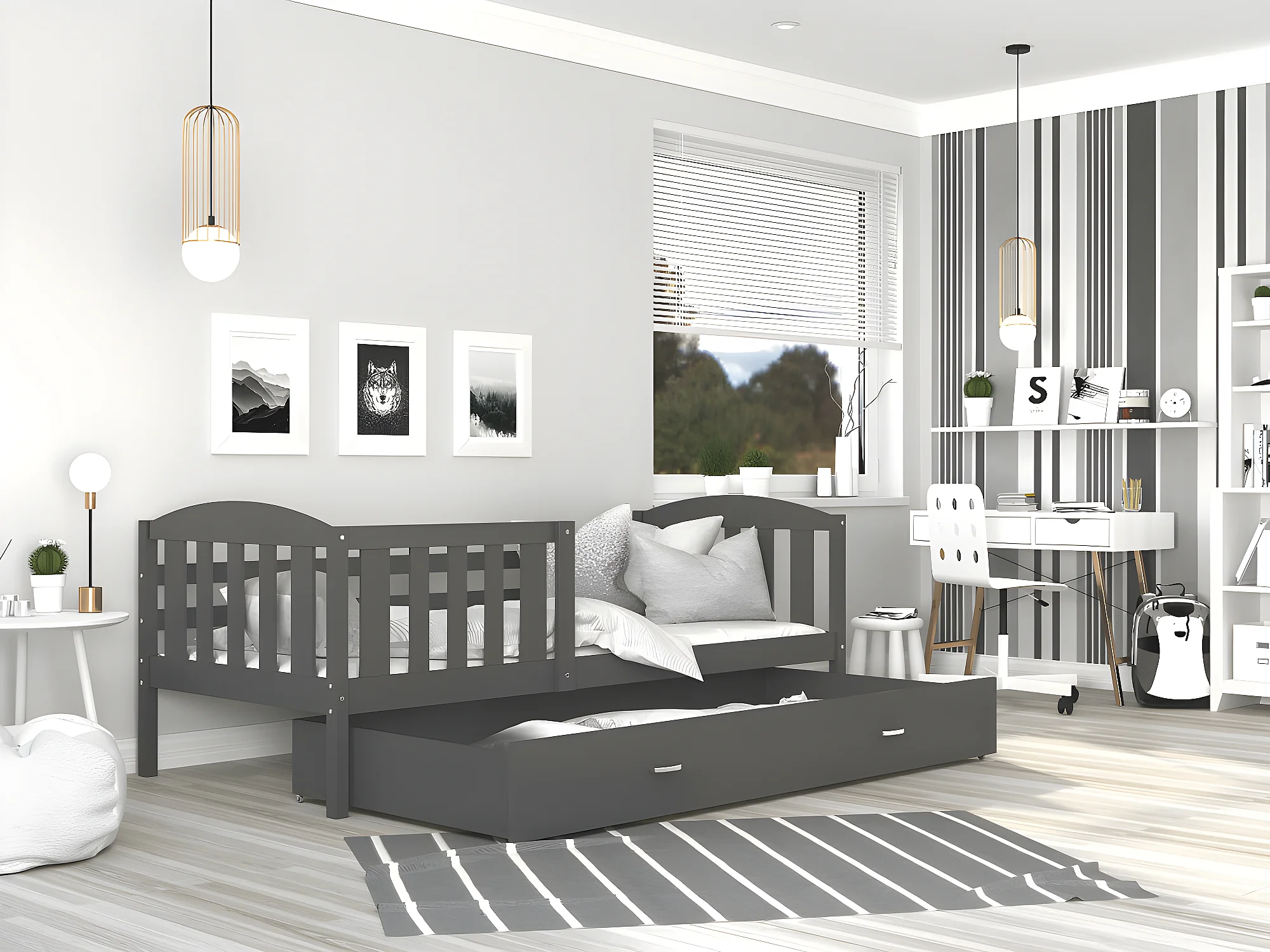 Lit enfant LUNA 90X190 cm - 1 Matelas , 1 Sommier et Tiroir inclus Gris