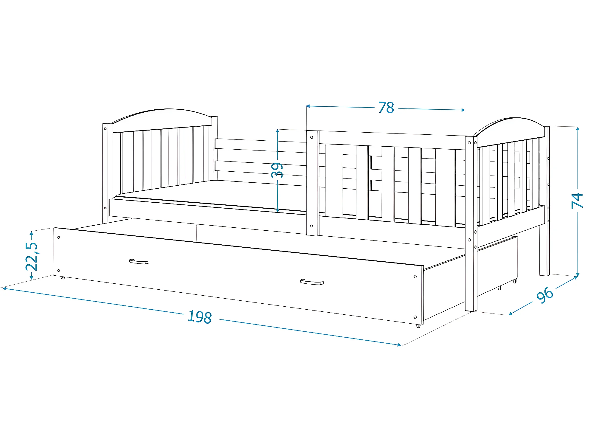 Lit enfant LUNA 90X190 cm - 1 Matelas , 1 Sommier et Tiroir inclus Pin