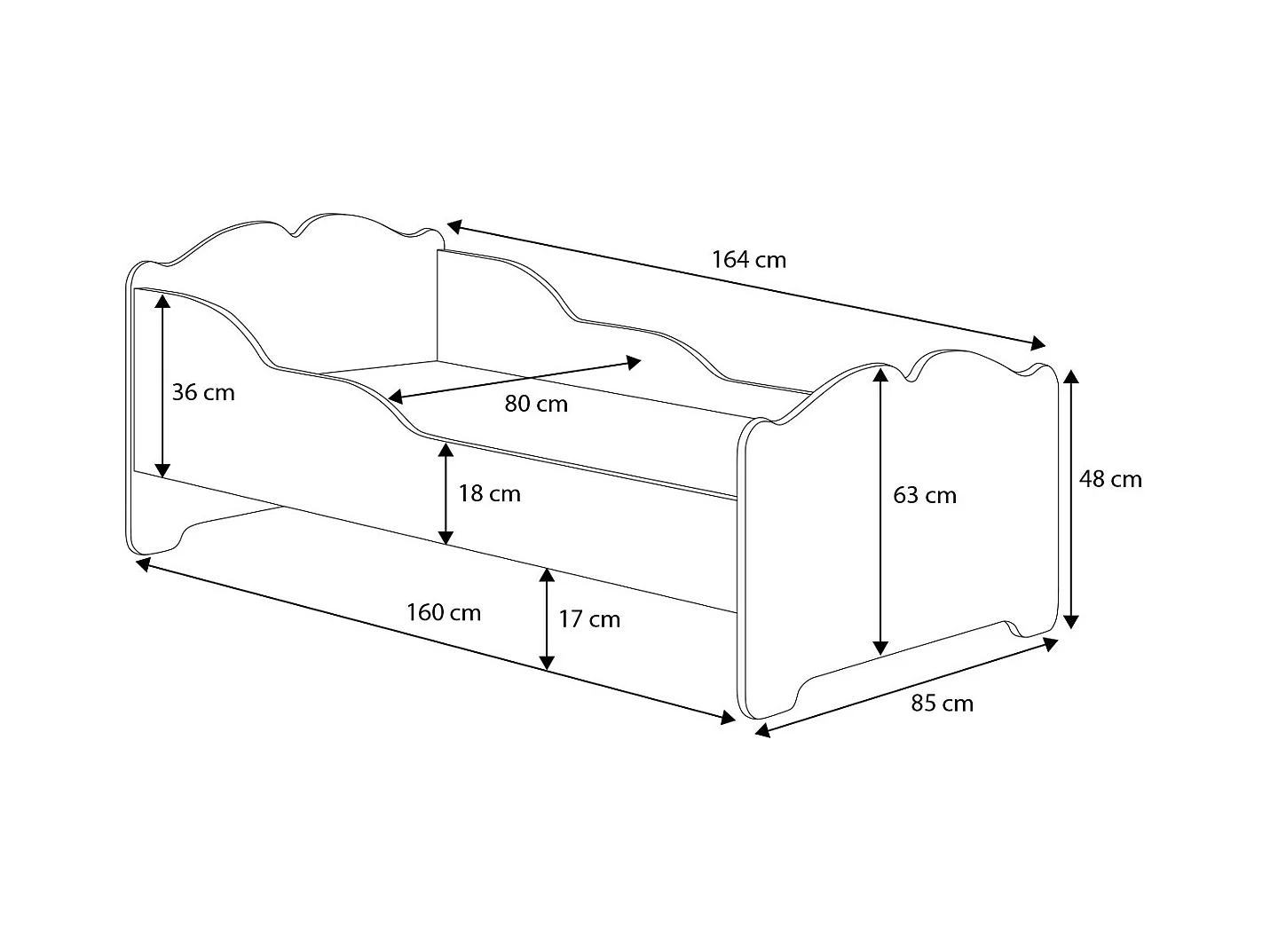 Lit enfant ALMENA avec matelas et cadre inclus - Sans graphique - 160 cm x 80 cm