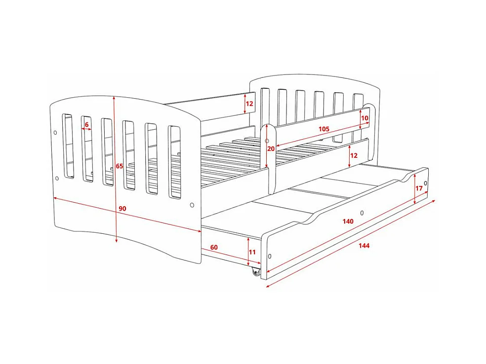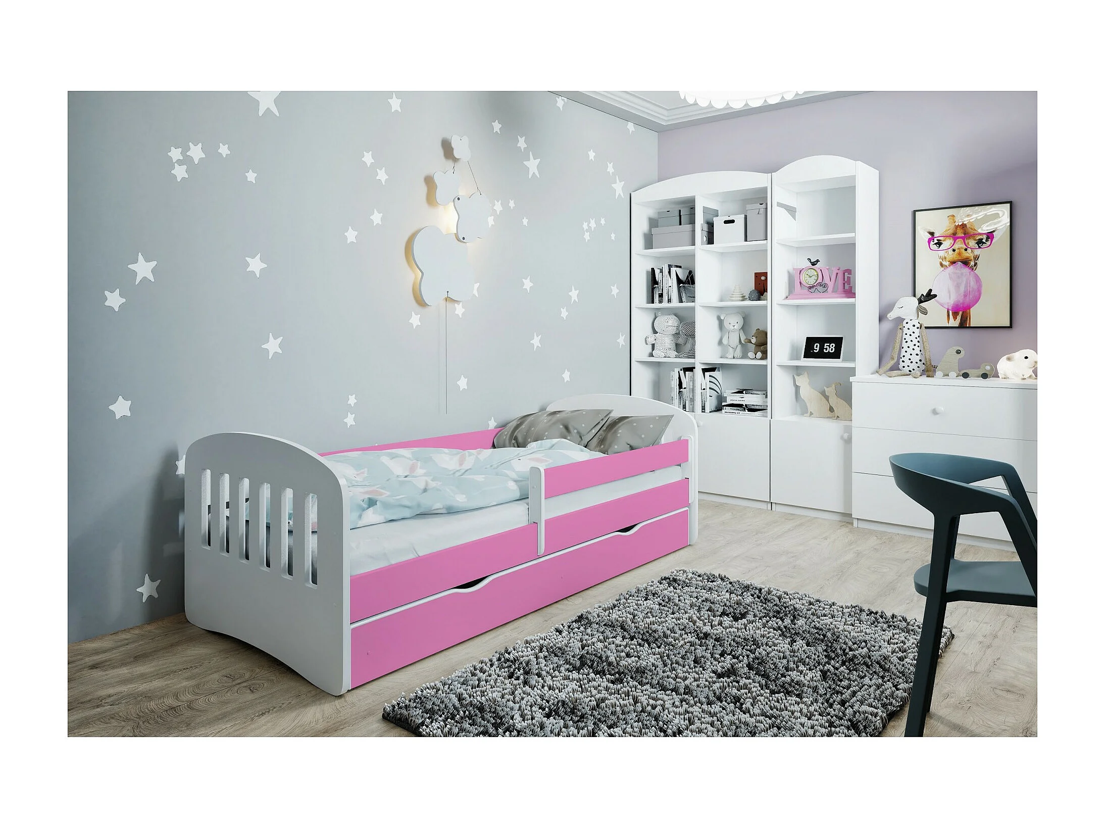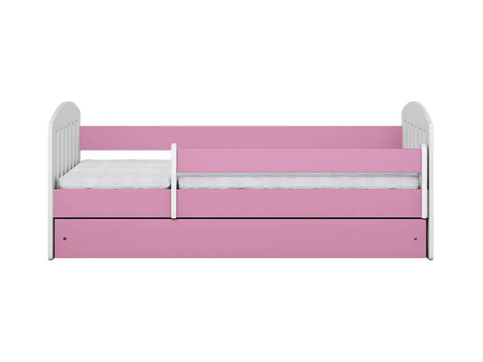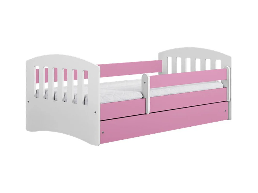 Lit enfant avec barrière de sécurité amovible rose Klaky-80x160-Tiroirs Avec tiroir