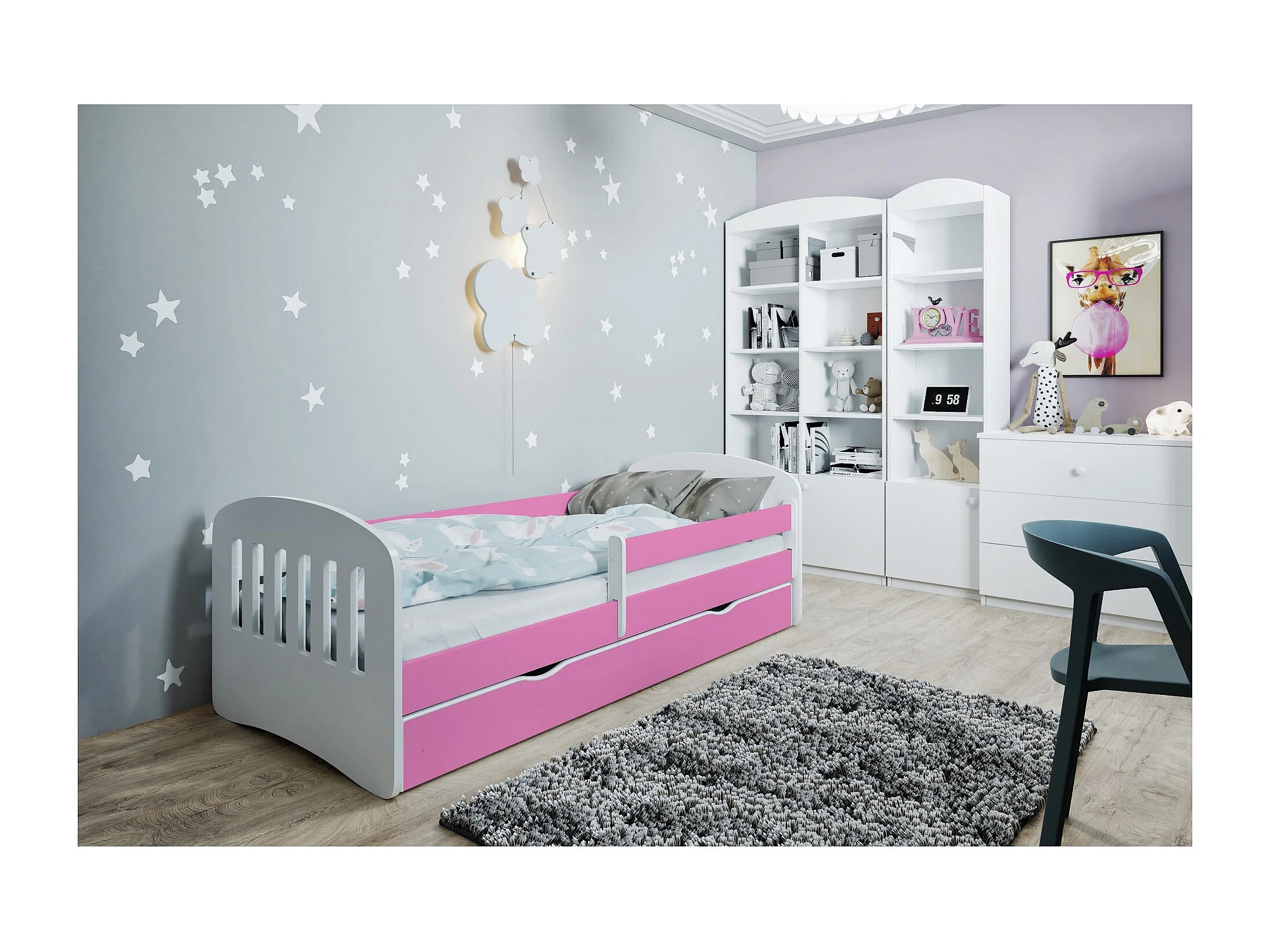 Lit enfant avec barrière de sécurité amovible rose Klaky-Matelas mousse-80x180-Tiroirs Avec tiroir