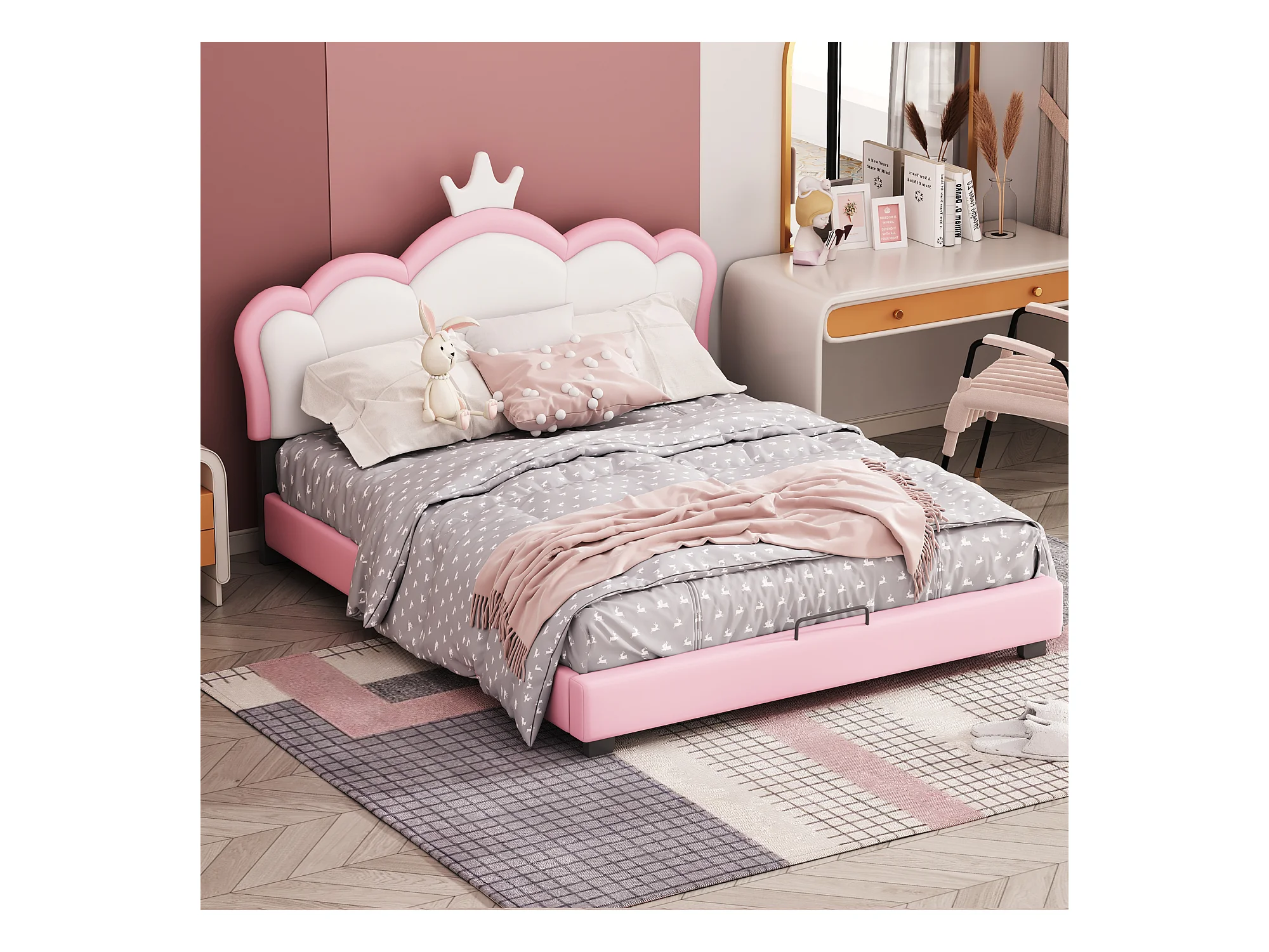 Lit enfant avec sommier Cadre de - 140 x 200 cm rose couronne - Sweiko