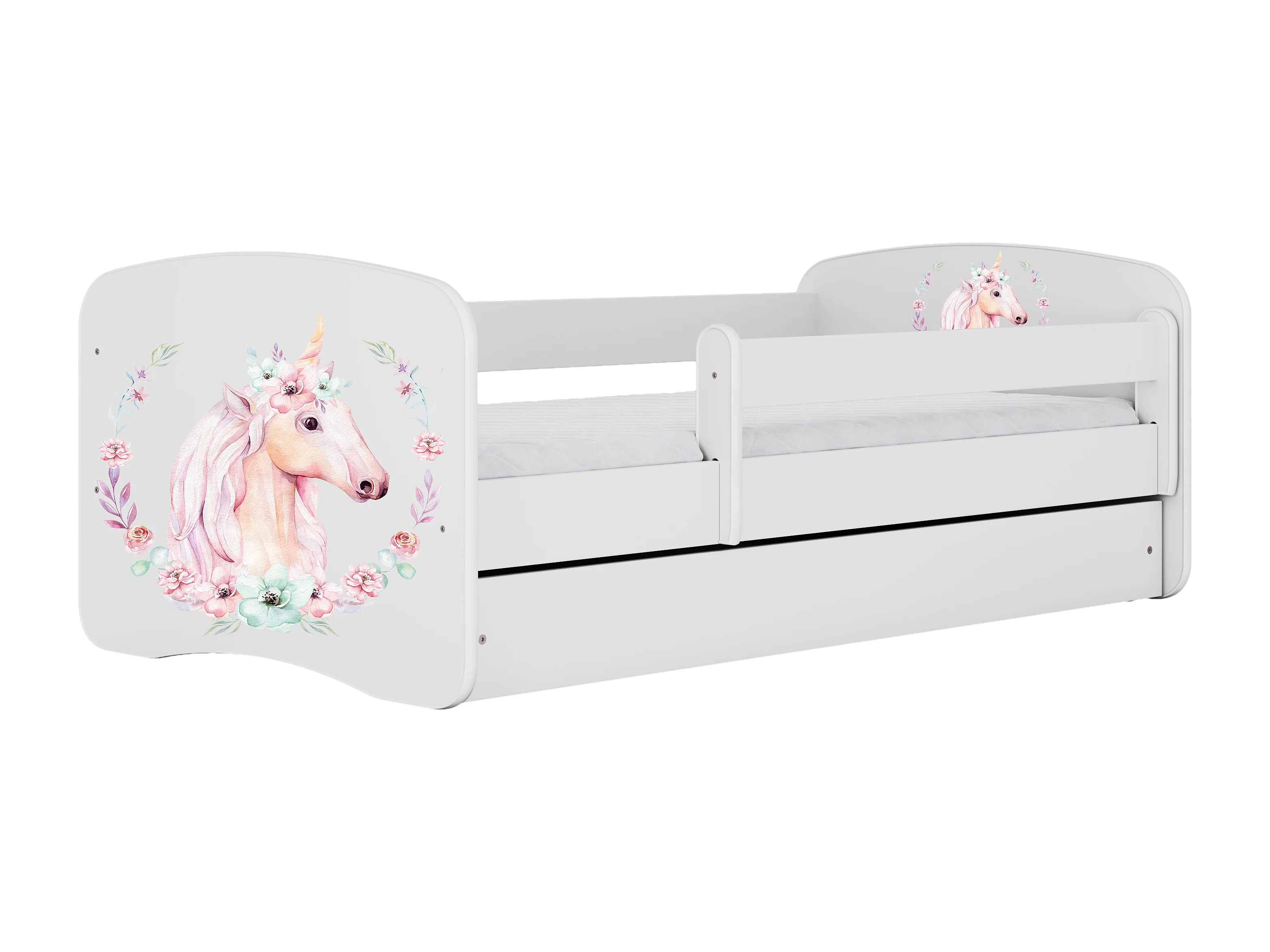 Lit enfant avec tiroir et barrière- Cheval - 80 x 180 cm
