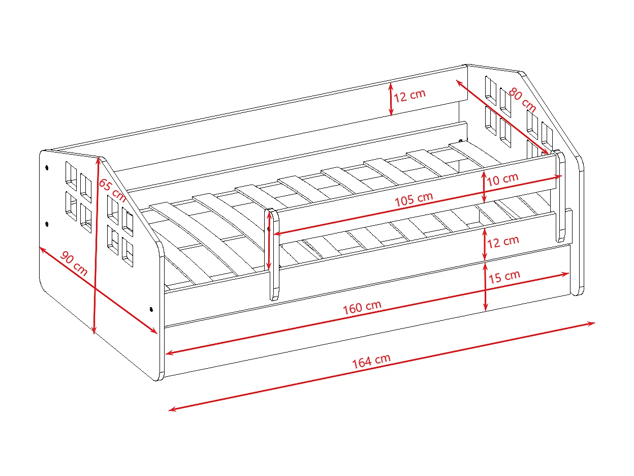 Lit enfant avec tiroir et barrière- Kacper - 80 x 160 cm