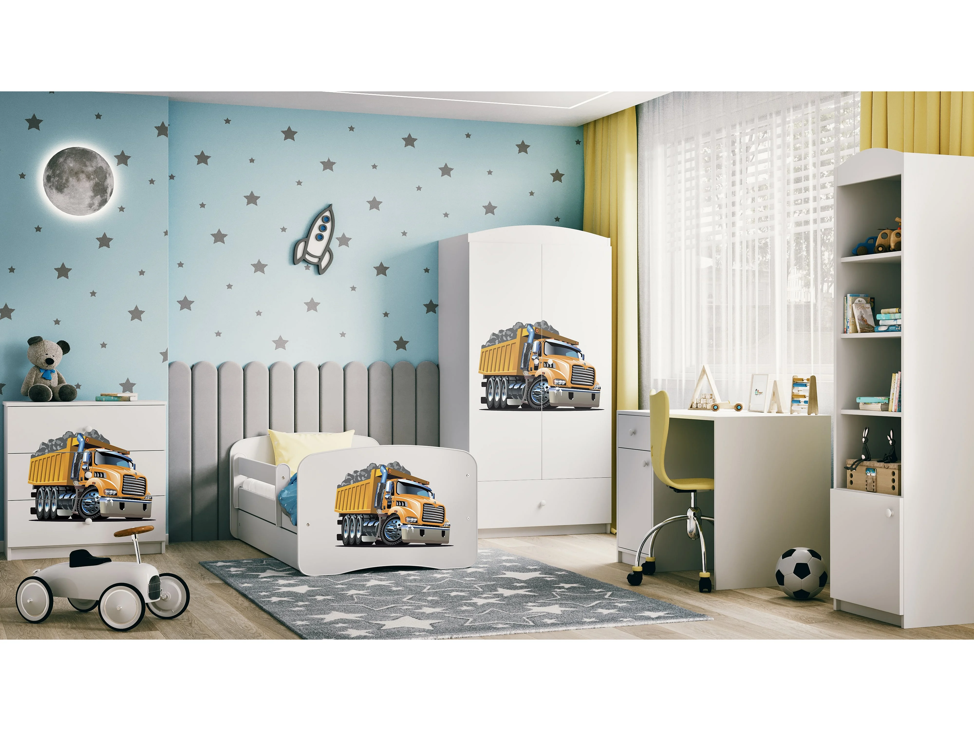 Lit enfant avec tiroir et barrière, matelas inclus - Camion - 70 x 140 cm