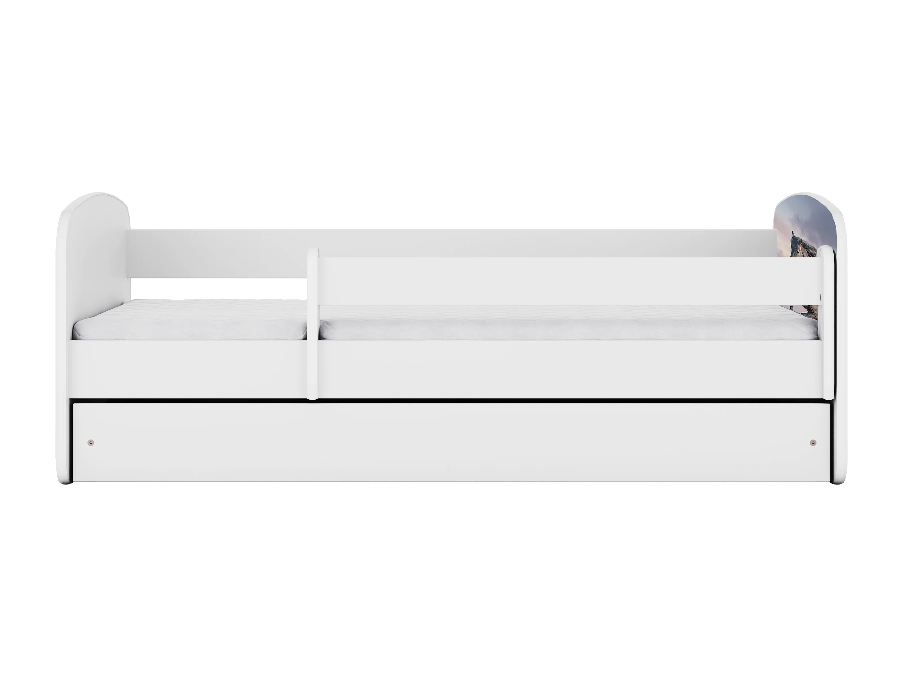 Lit enfant avec tiroir et barrière, matelas inclus - Cheval au Galop - 80 x 160 cm
