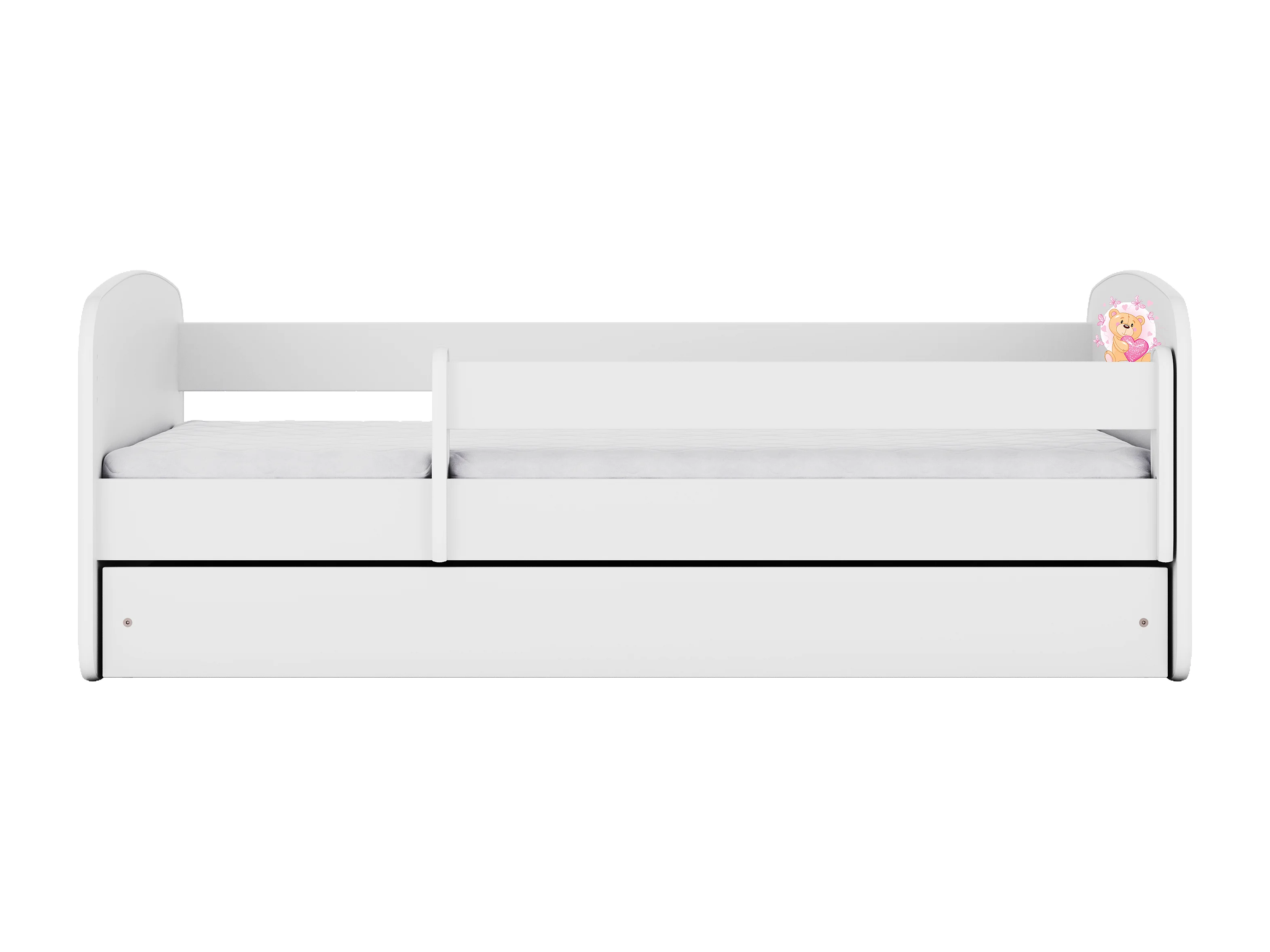Lit enfant avec tiroir et barrière, matelas inclus - Ourson Papillon - 80 x 160 cm