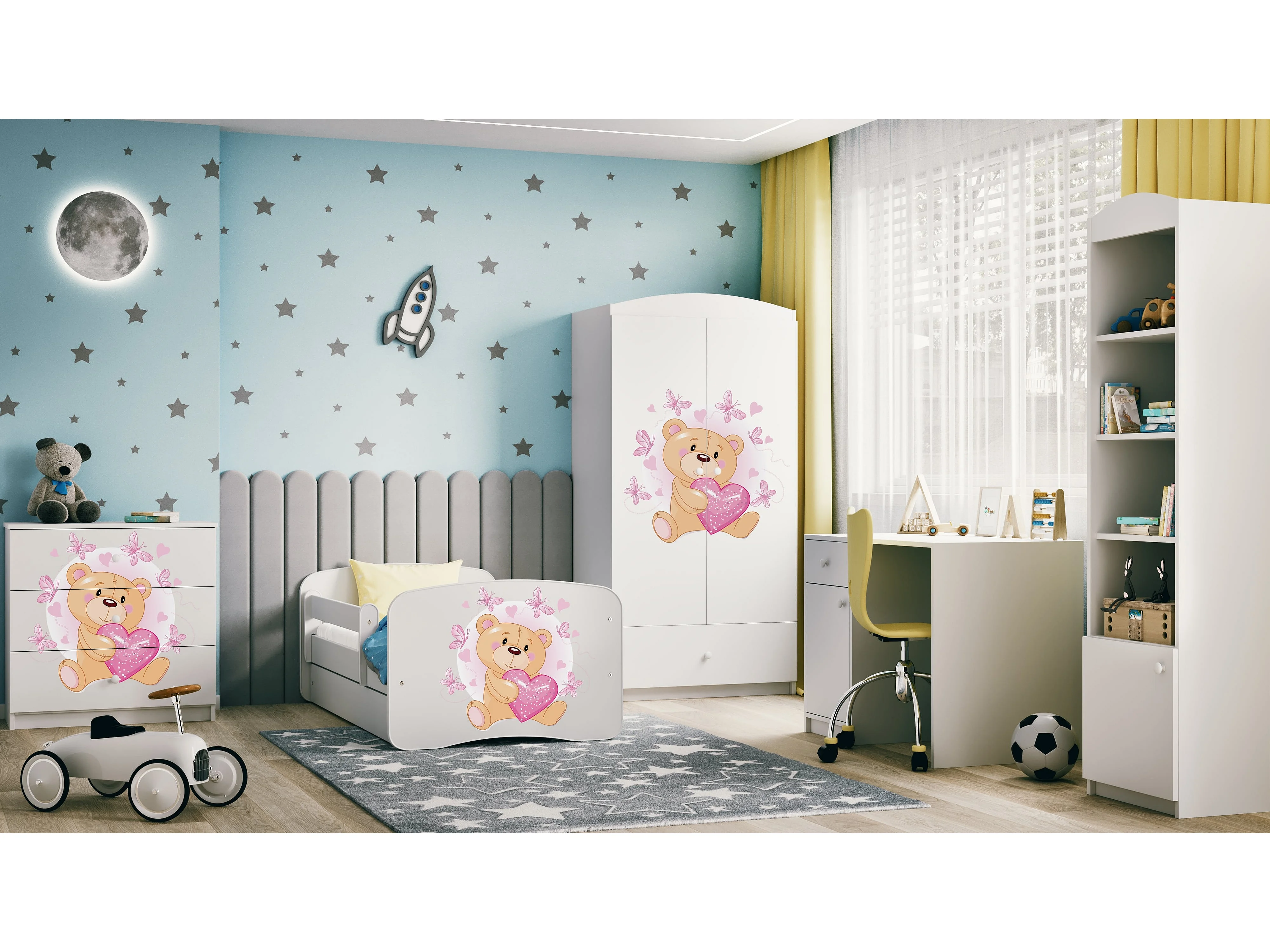 Lit enfant avec tiroir et barrière, matelas inclus - Ourson Papillon - 80 x 180 cm