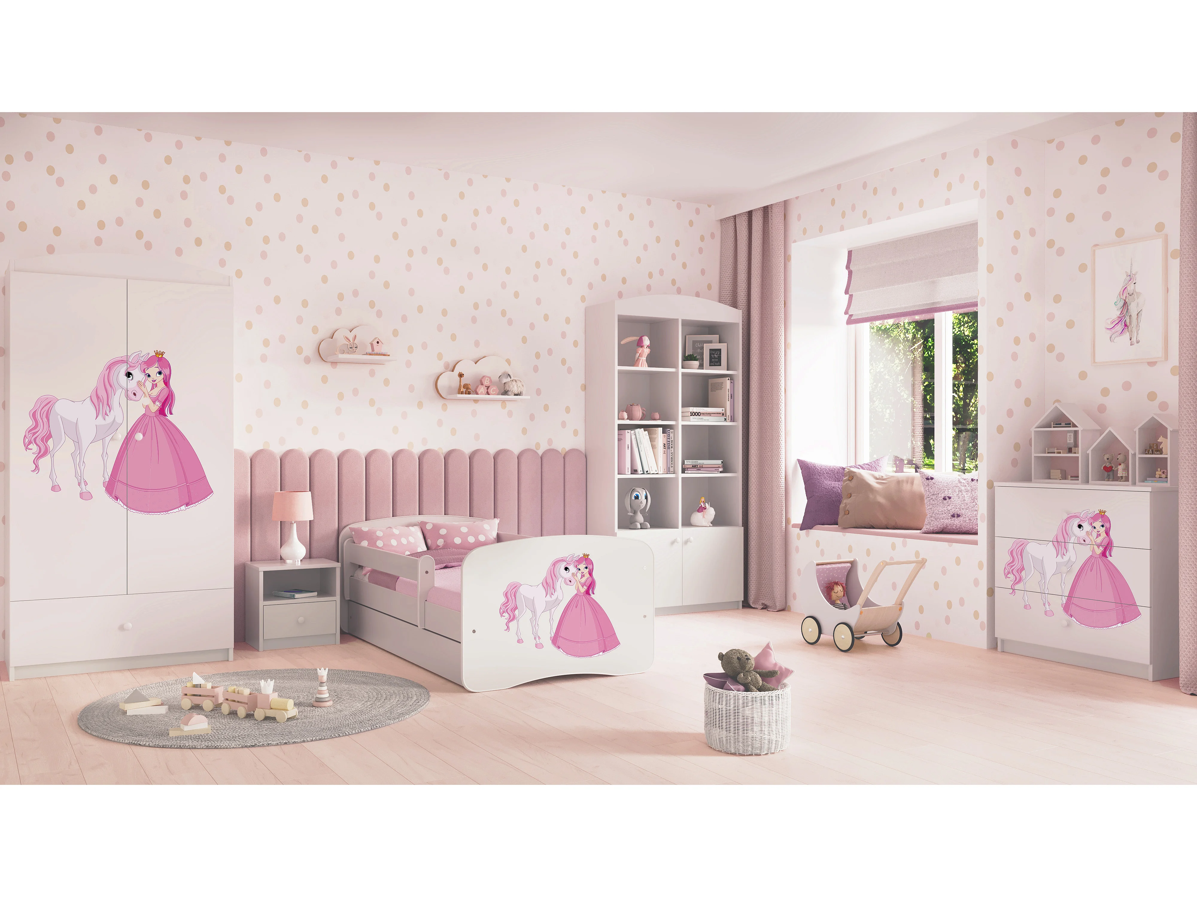 Lit enfant avec tiroir et barrière, matelas inclus - Princesse avec Cheval - 80 x 180 cm