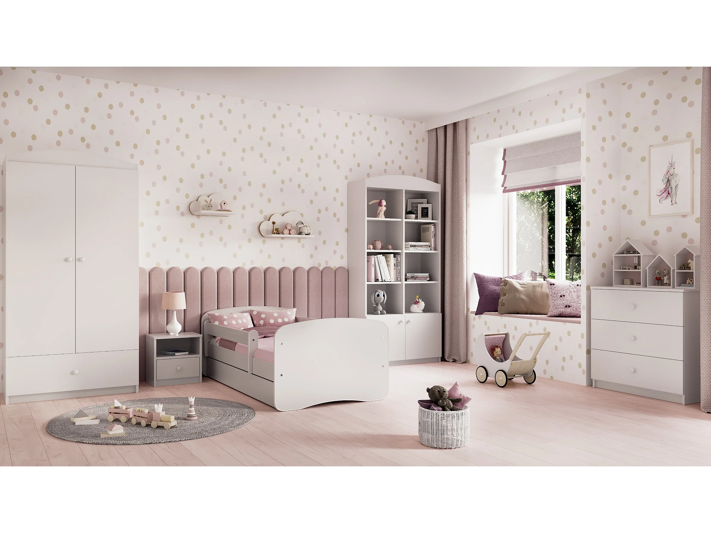 Lit enfant avec tiroir et barrière, matelas inclus - Sans Motif - 80 x 180 cm