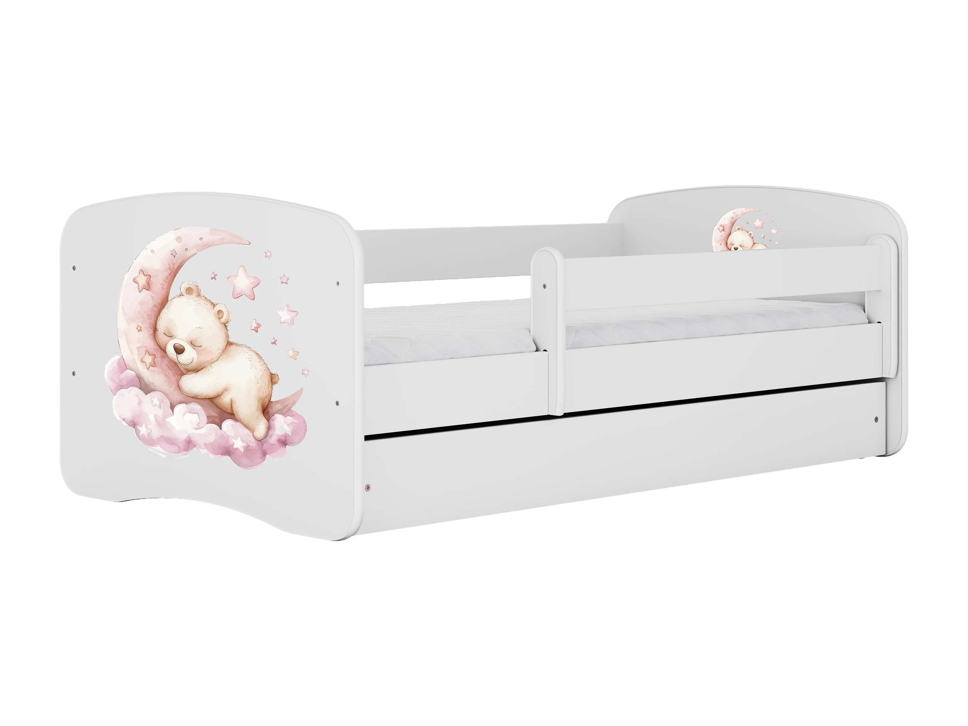 Lit enfant avec tiroir et barrière, matelas inclus - Sommeil - 80 x 180 cm