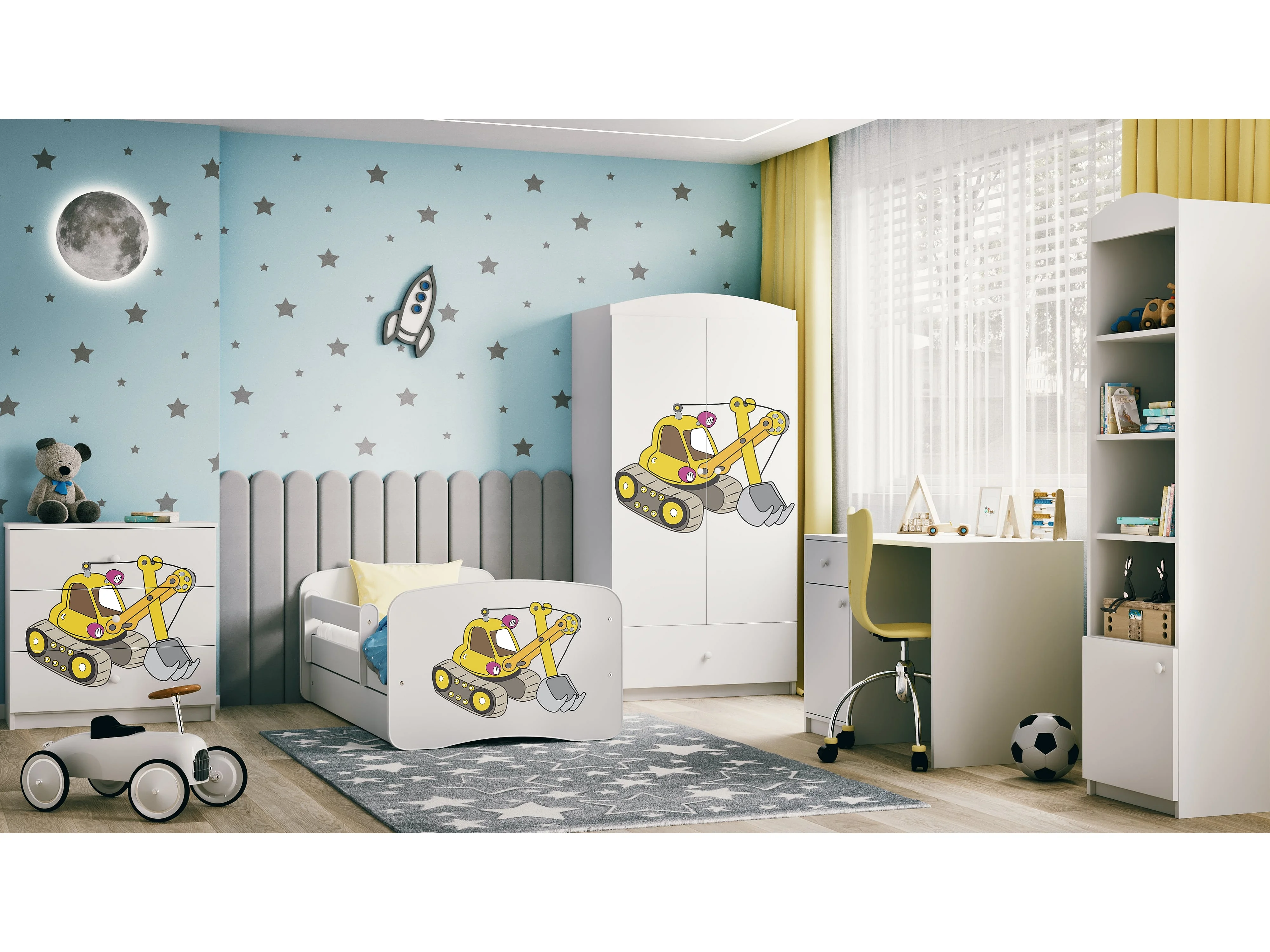 Lit enfant avec tiroir et barrière- Pelleteuse - 80 x 160 cm