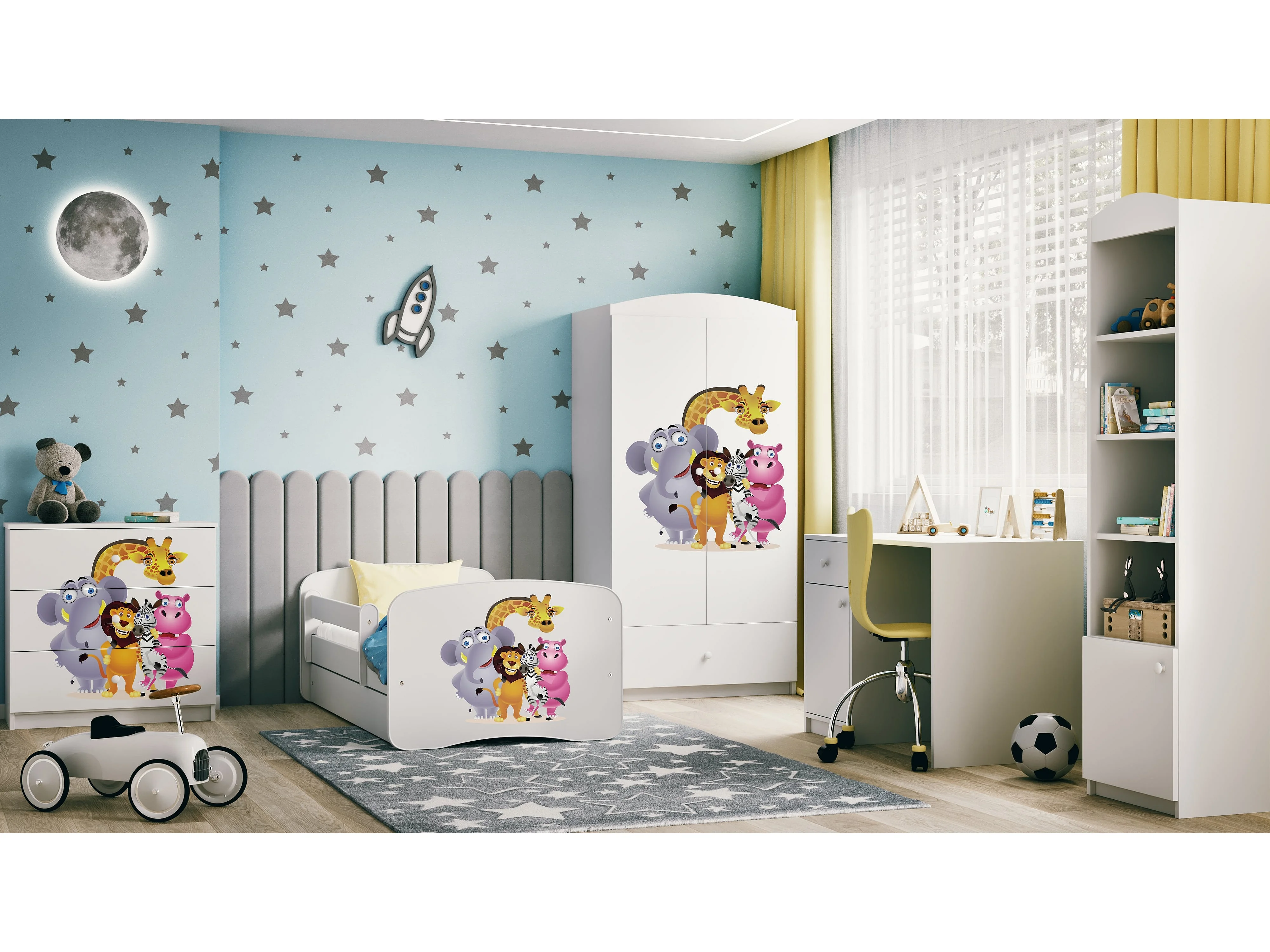 Lit enfant avec tiroir et barrière- Zoo - 70 x 140 cm