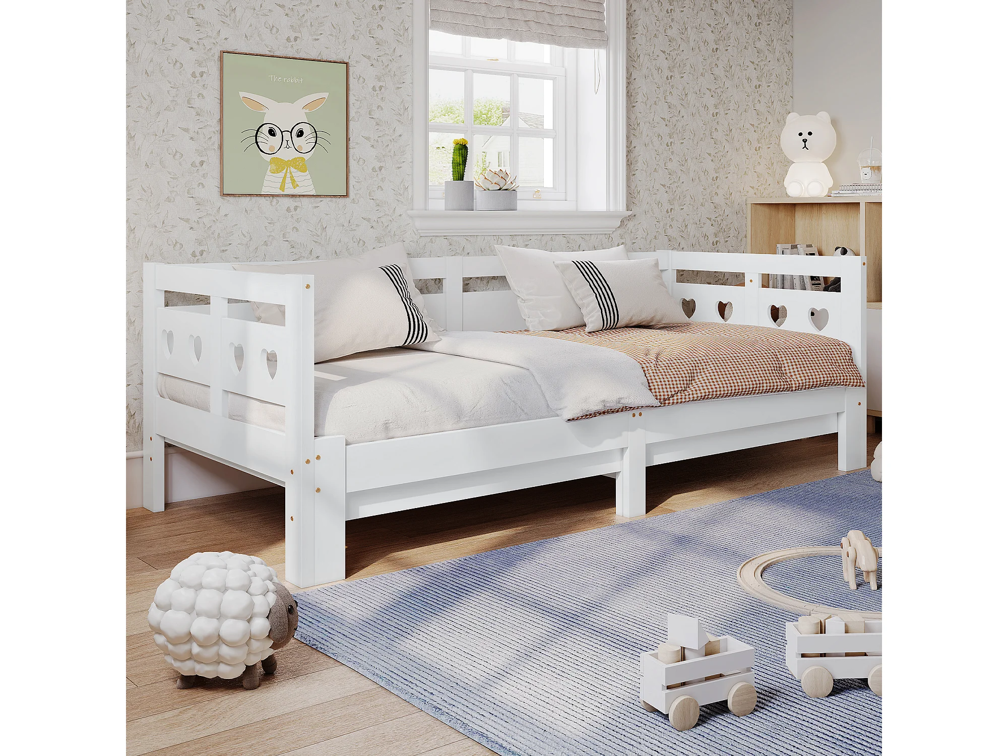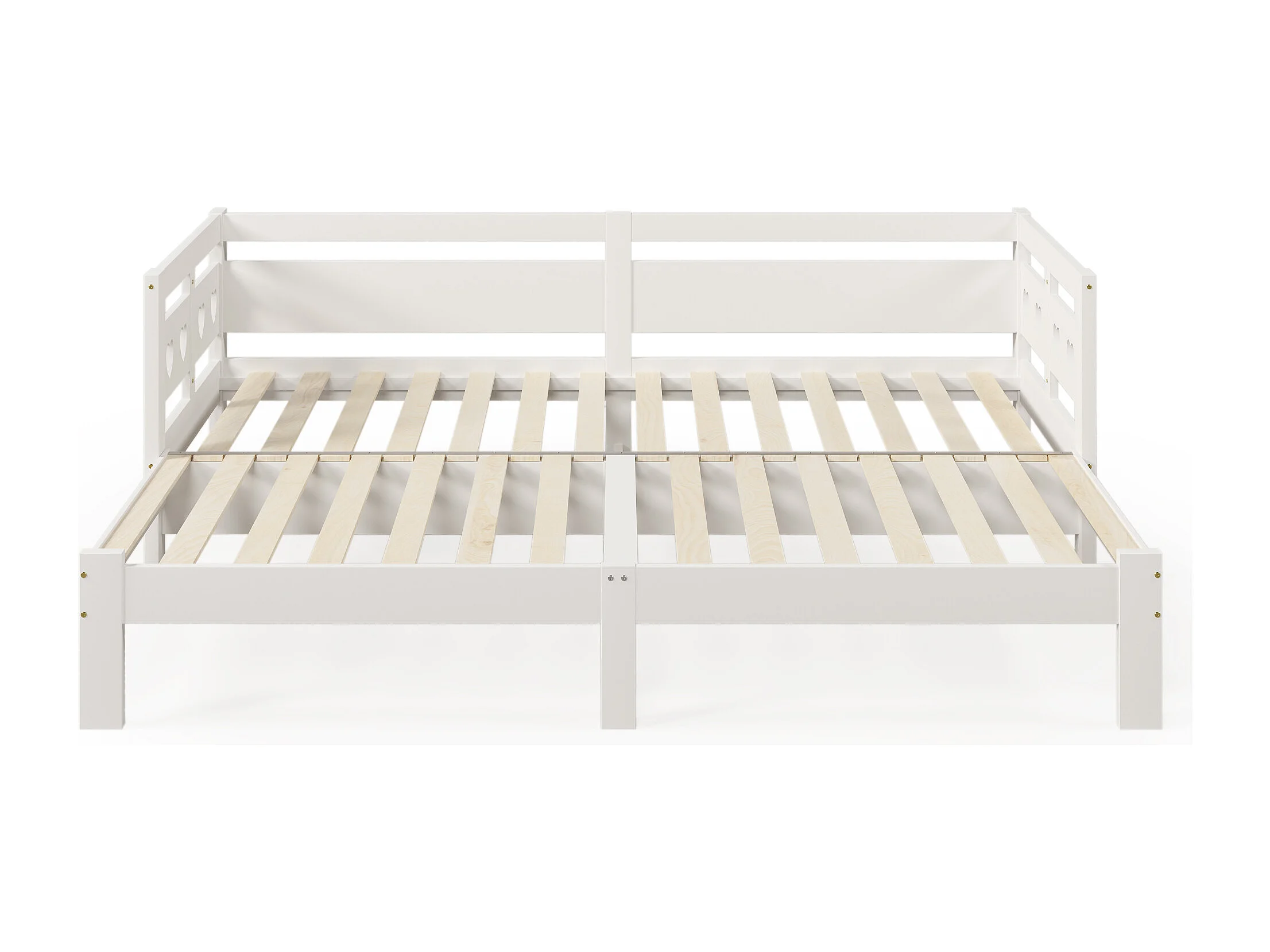 Lit enfant banquette 90x200cm convertible, sommier à lattes, bois, blanc, sans matelas