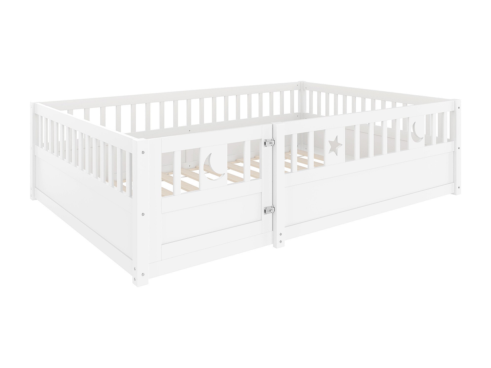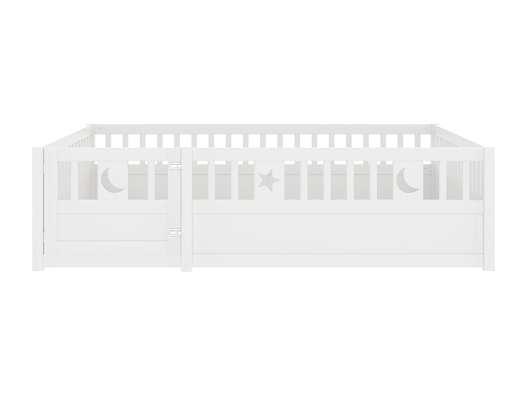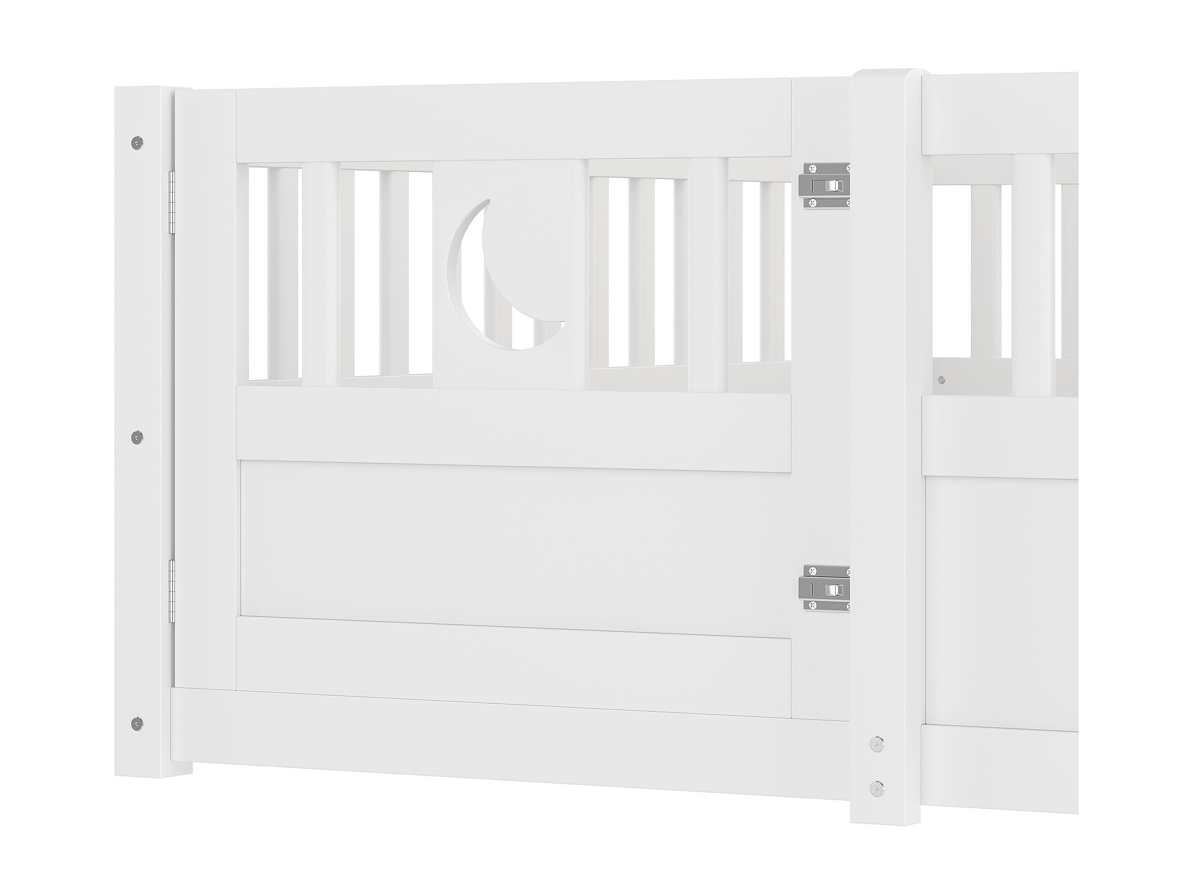 Lit enfant blanc 140 x 190 cm avec barrières de sécurité, décor étoiles et lune, sommier à lattes (sans matelas)