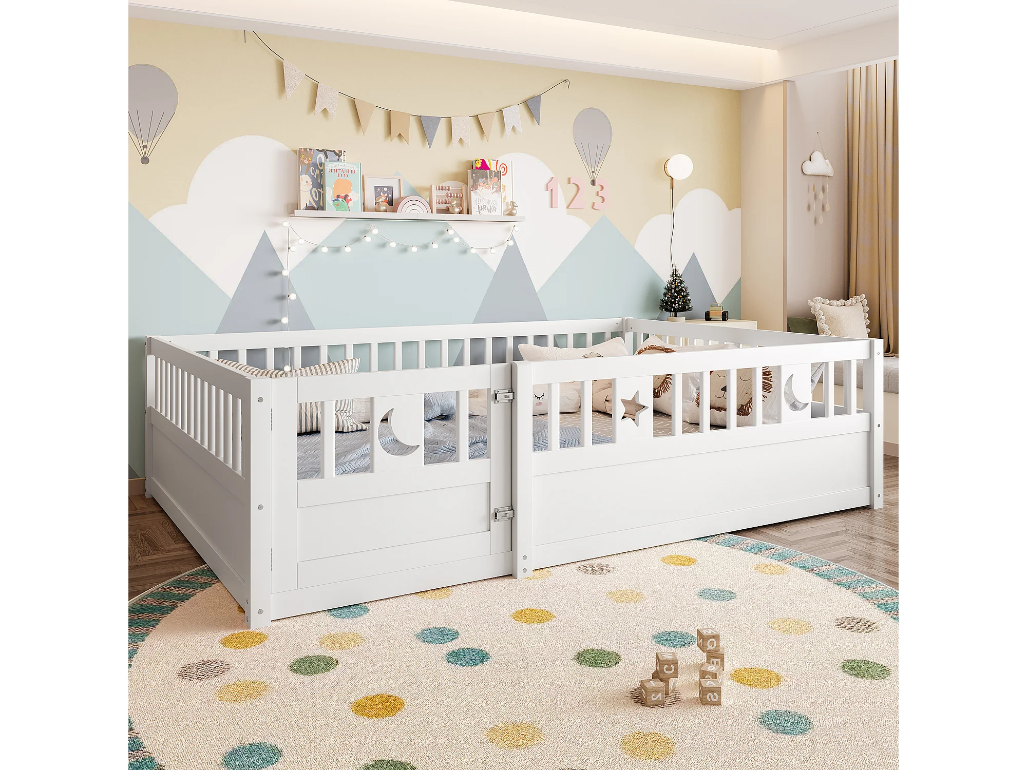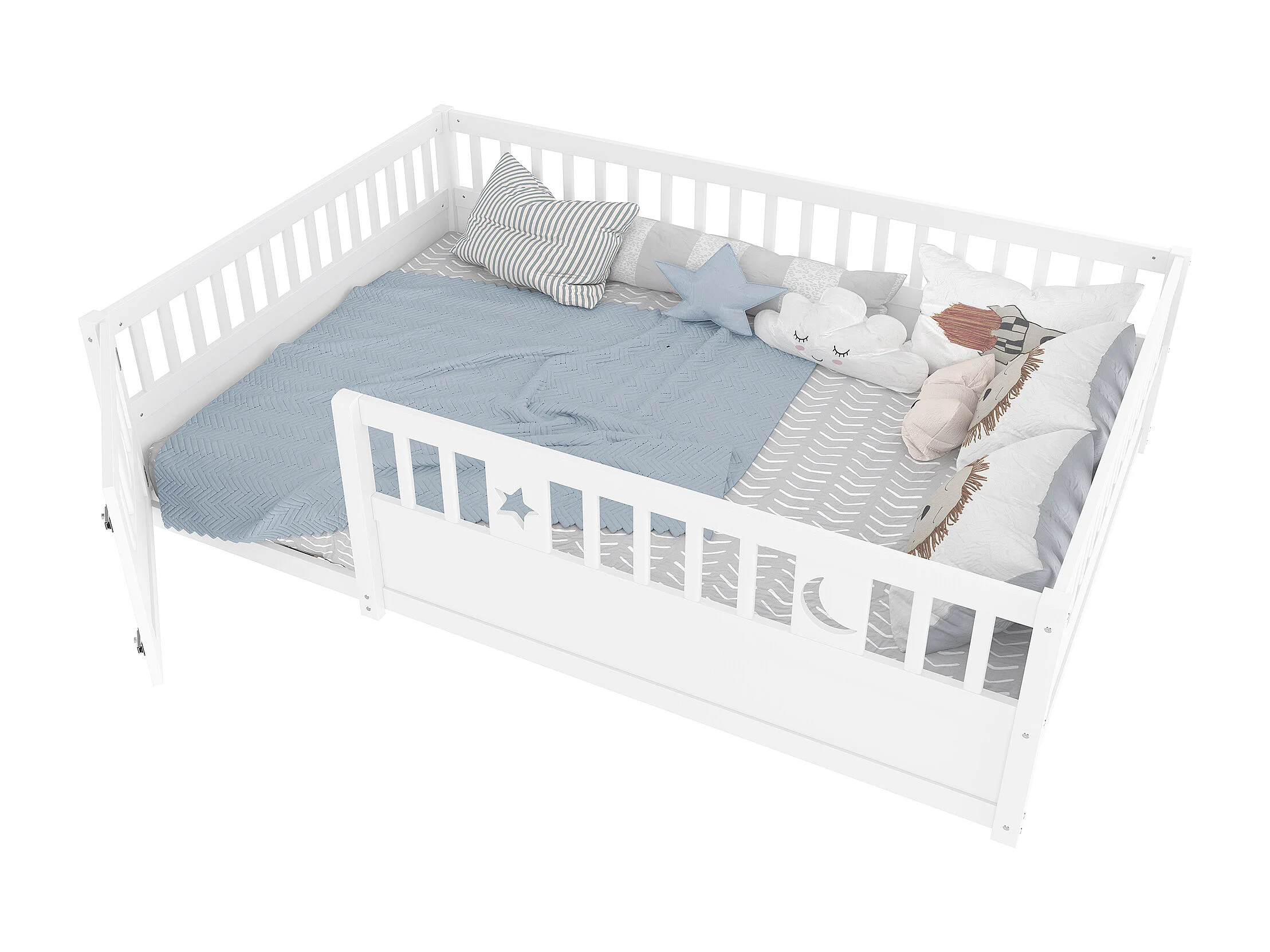 Lit enfant blanc 140 x 190 cm - Lit adulte avec barrières de sécurité et porte - sans sommier - matelas non inclus