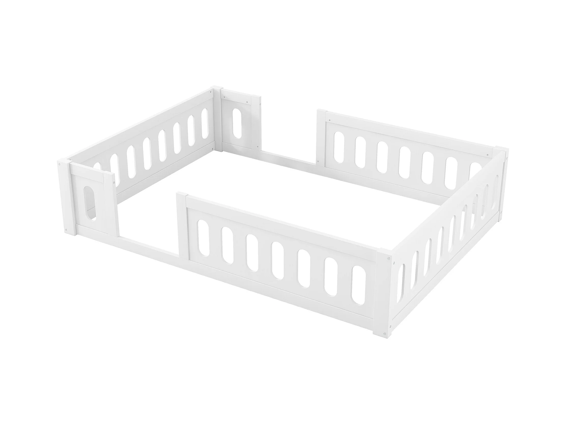 Lit d'enfant 140 x 200cm, cadre de lit en bois avec bordure et porte, blanc