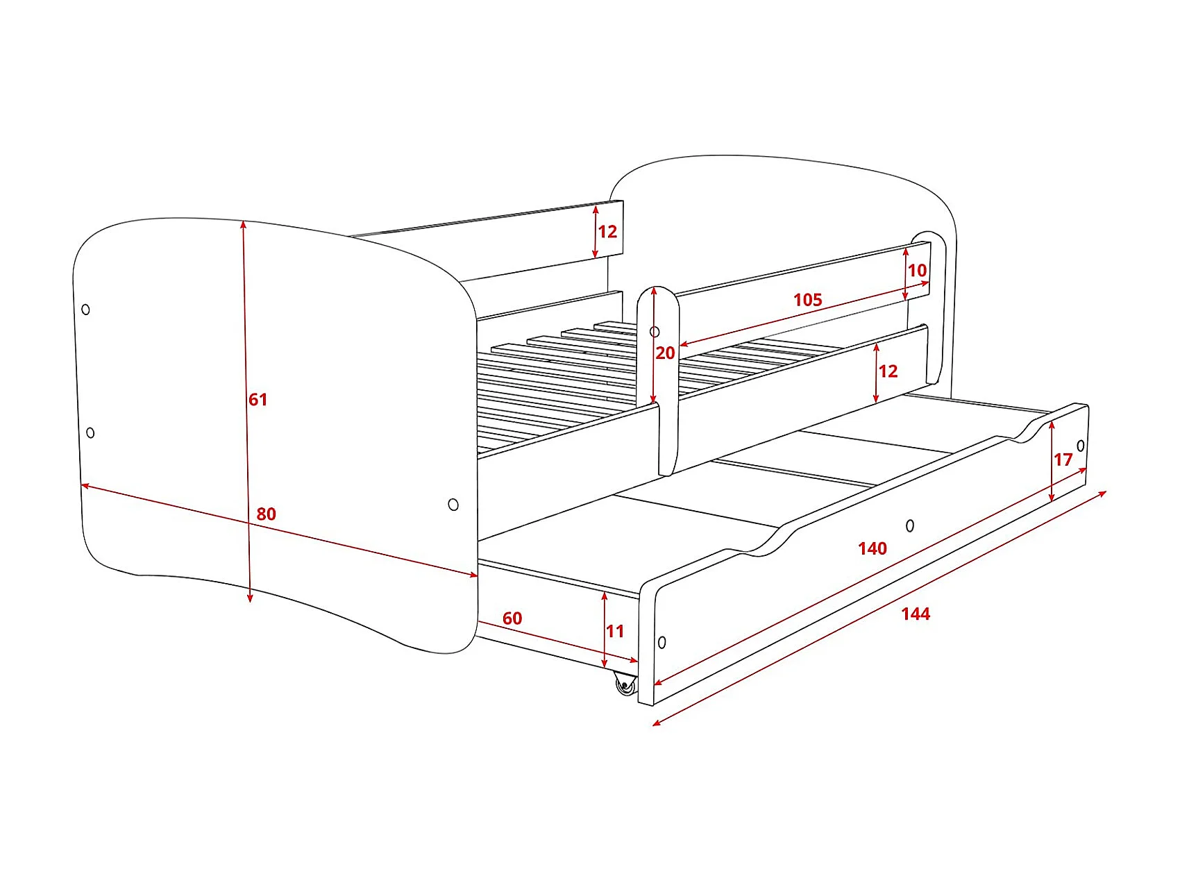 Lit enfant blanc Safari avec sommiers et barrière de sécurité amovible Drimy-Matelas mousse-80x160