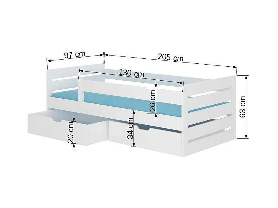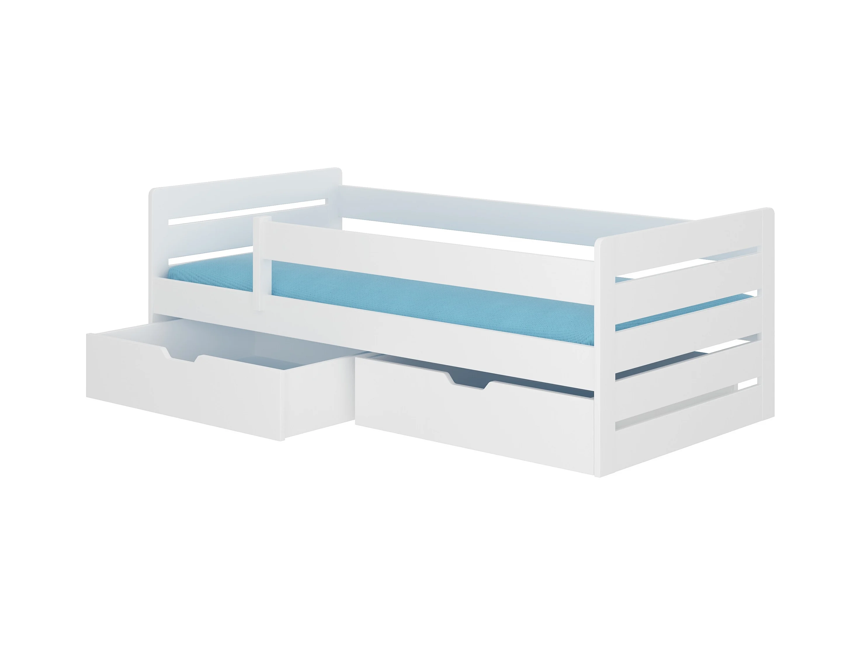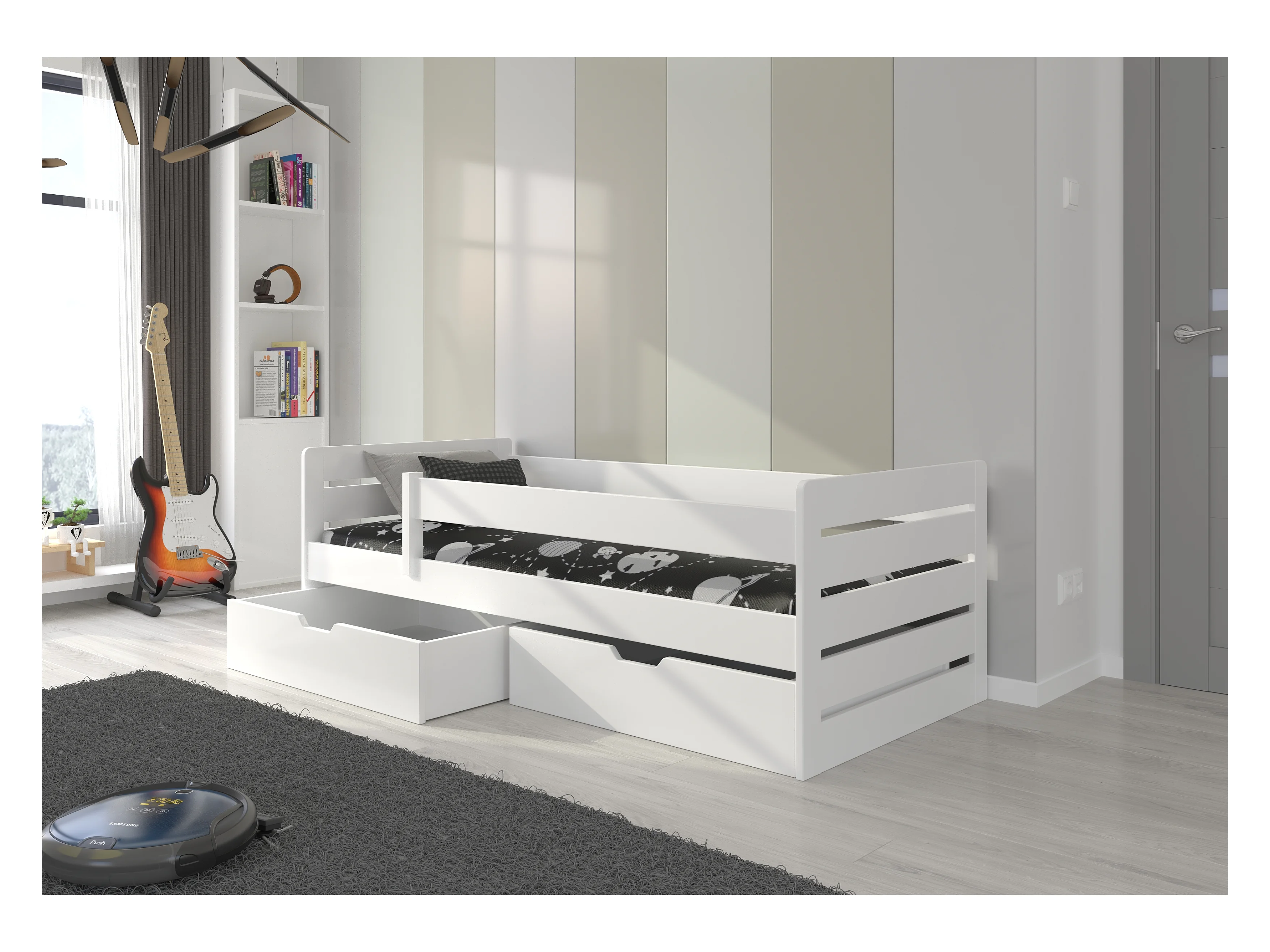 Lit enfant bois pin blanc 90x200 avec 2 tiroirs de rangement Kiko