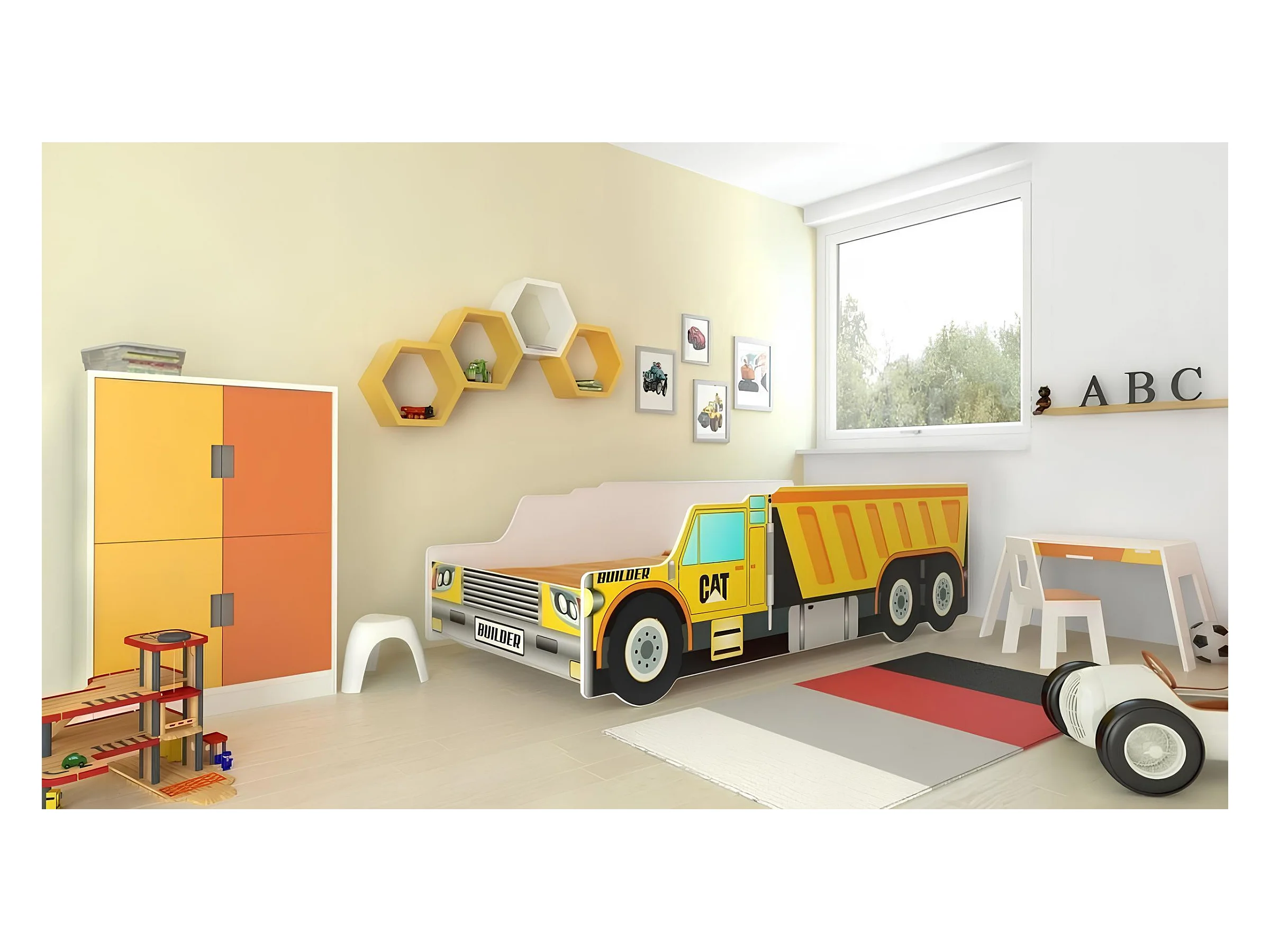 Lit enfant pour garçon Camion benne avec matelas et sommier inclus - 160 cm x 80 cm