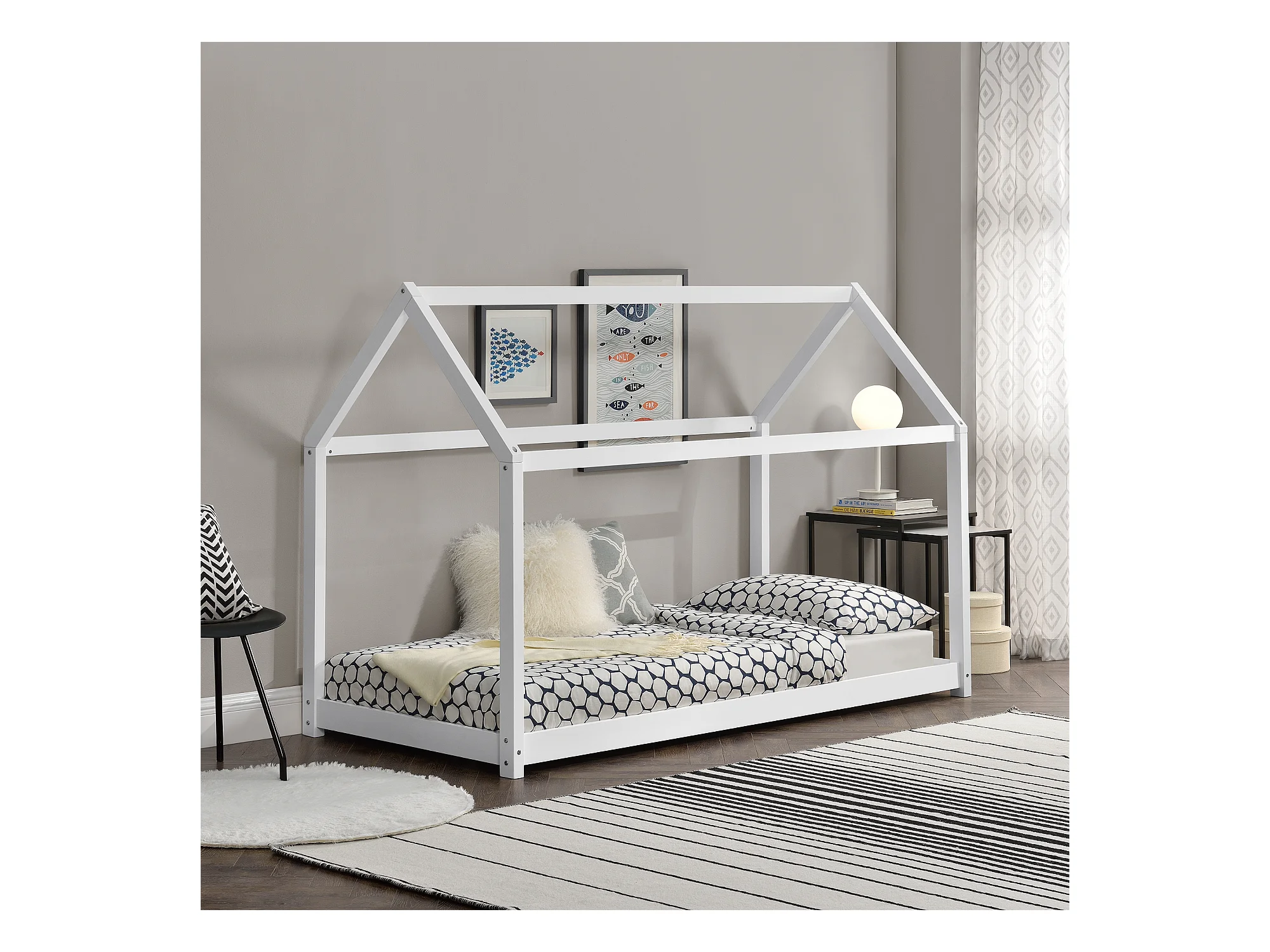Lit Enfant Design Maison Netstal Bois Blanc 90 x 200 cm Blanc [en.casa]
