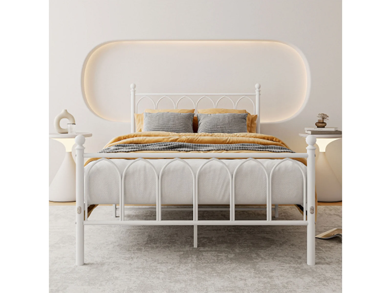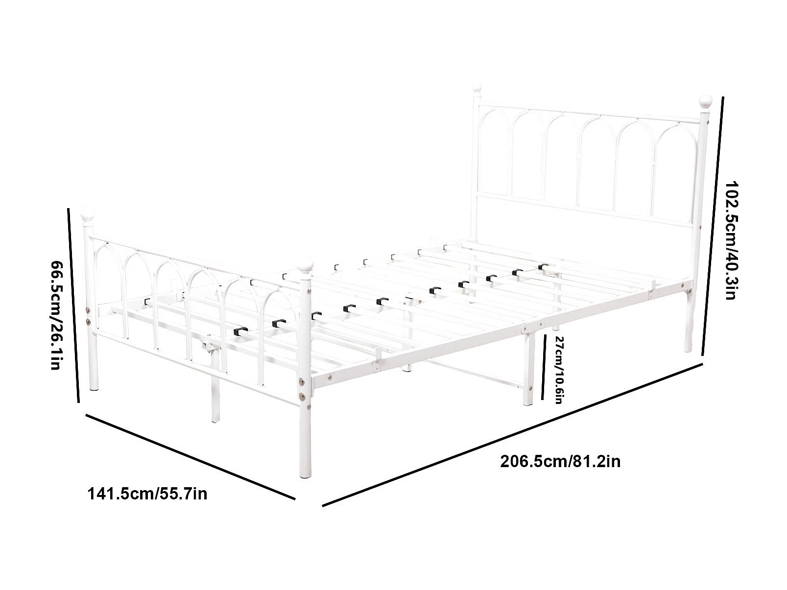 Lit enfant double 140x200cm, lit en métal blanc, sans matelas