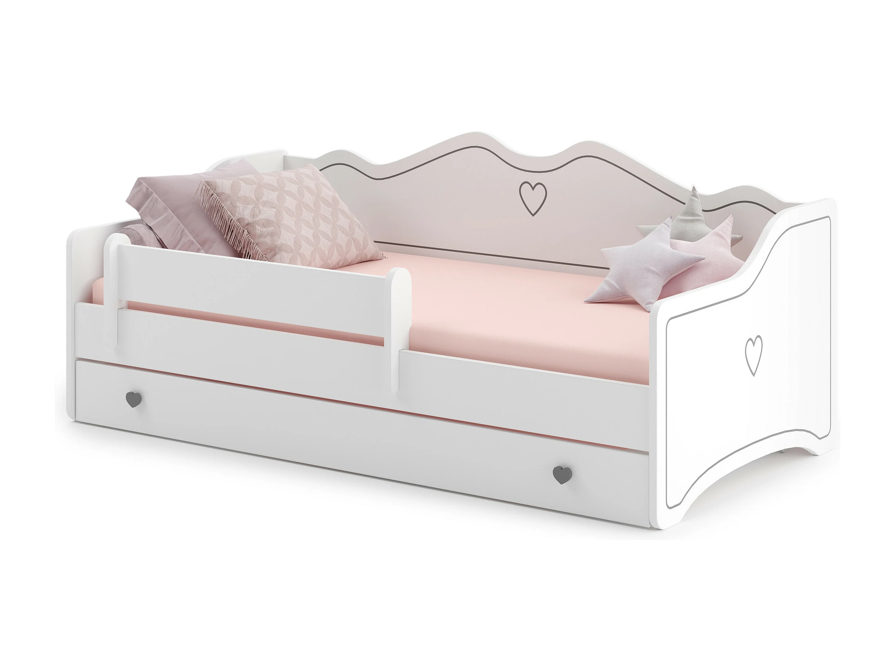 Lit enfant EMY 160x80cm avec tiroir - gris - Avec Matelas - coeur