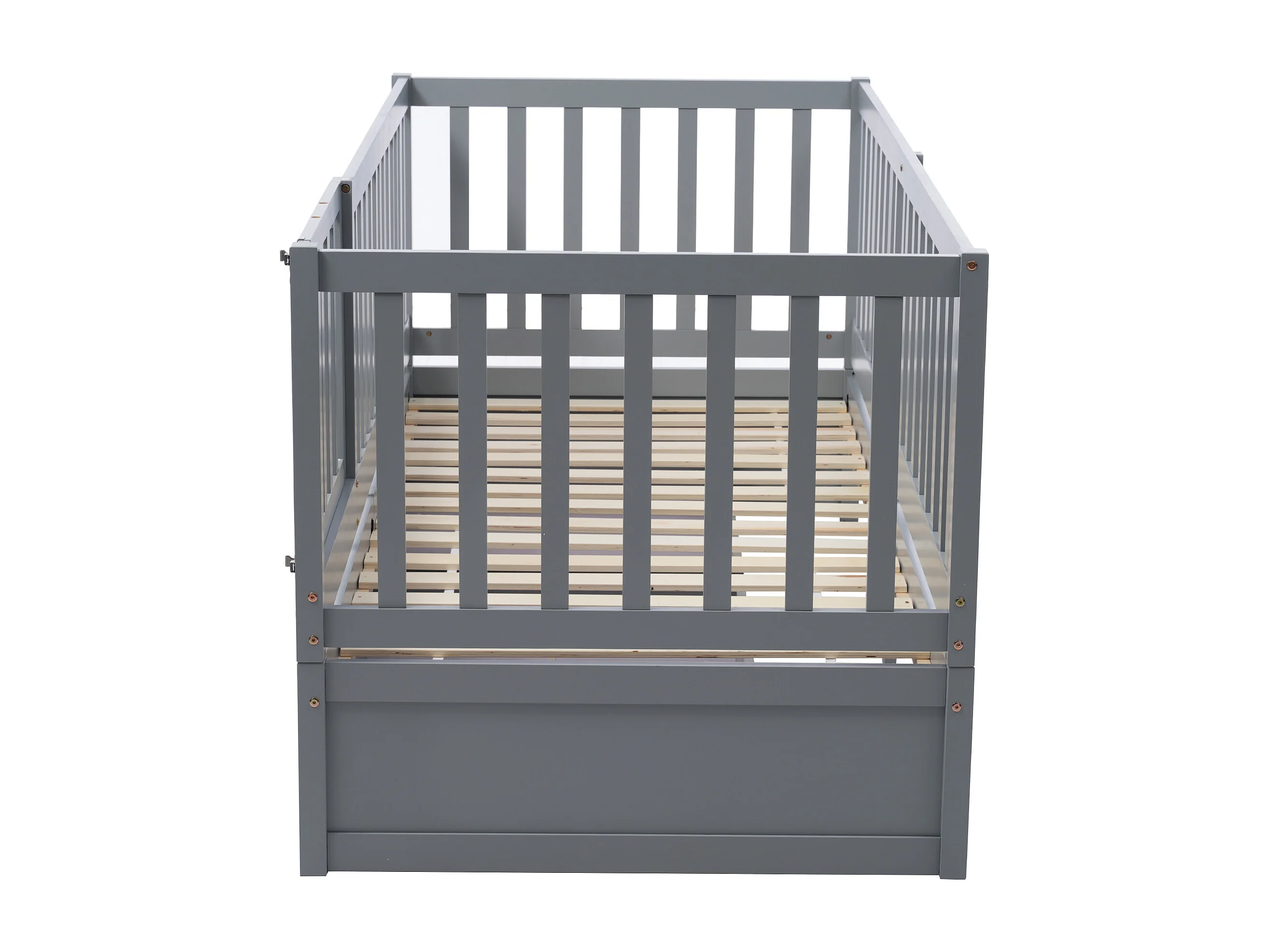 Lit Enfant En Bois 90 X 200 cm Avec 2Troirs et Barrière - Transformable En Deux Lits Séparés - Gris