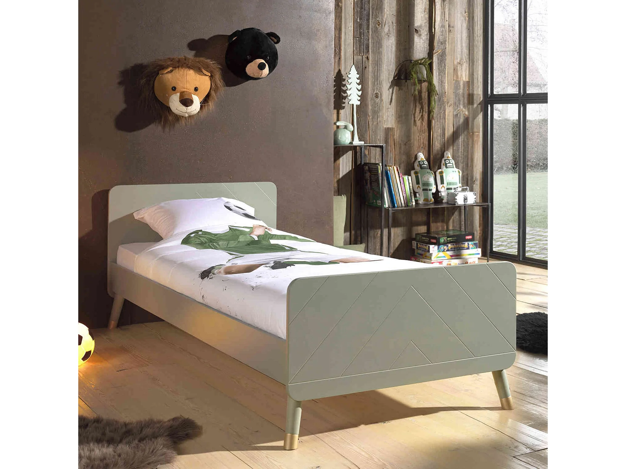 Lit enfant en bois massif vert 90x200 - LI2031