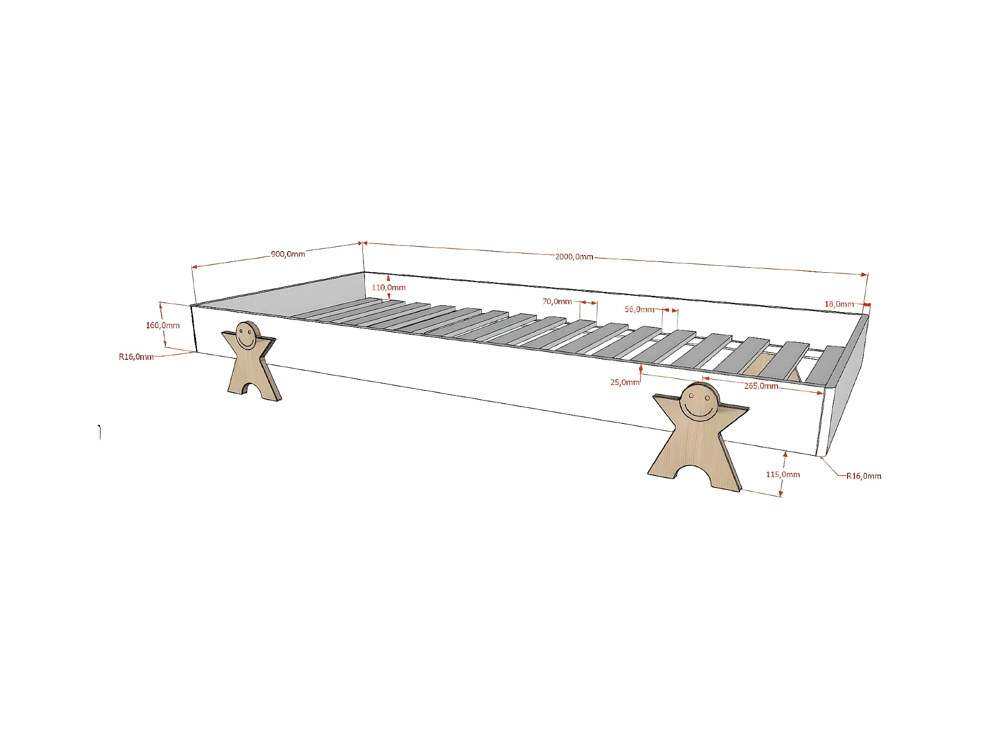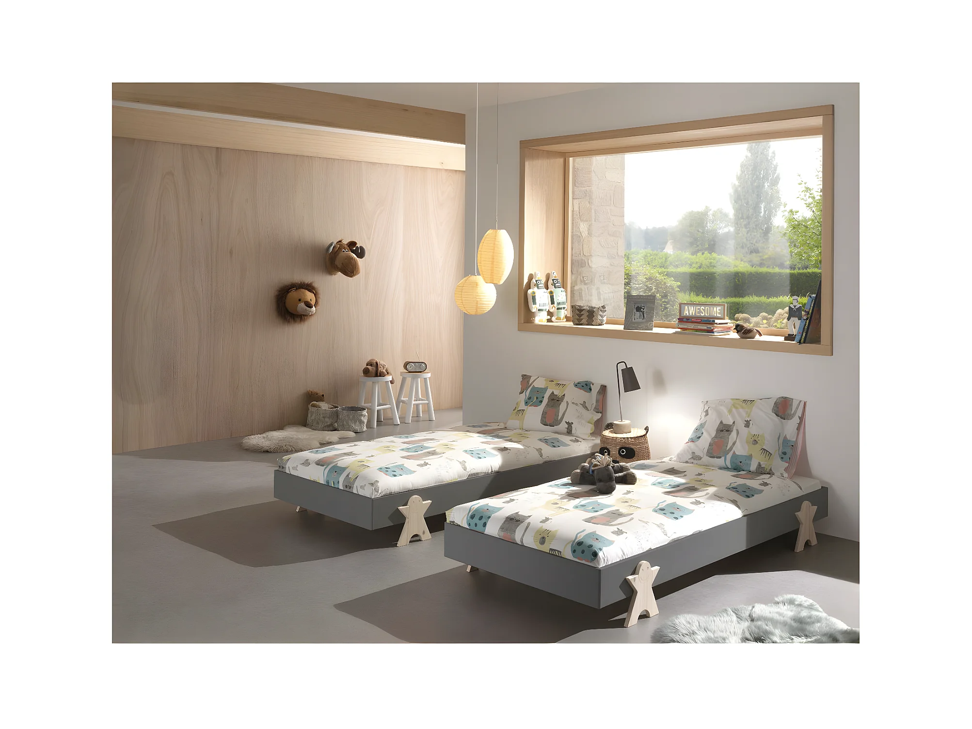 Lit Enfant en Bois "Modulo Smiley II" 90x200cm Gris
