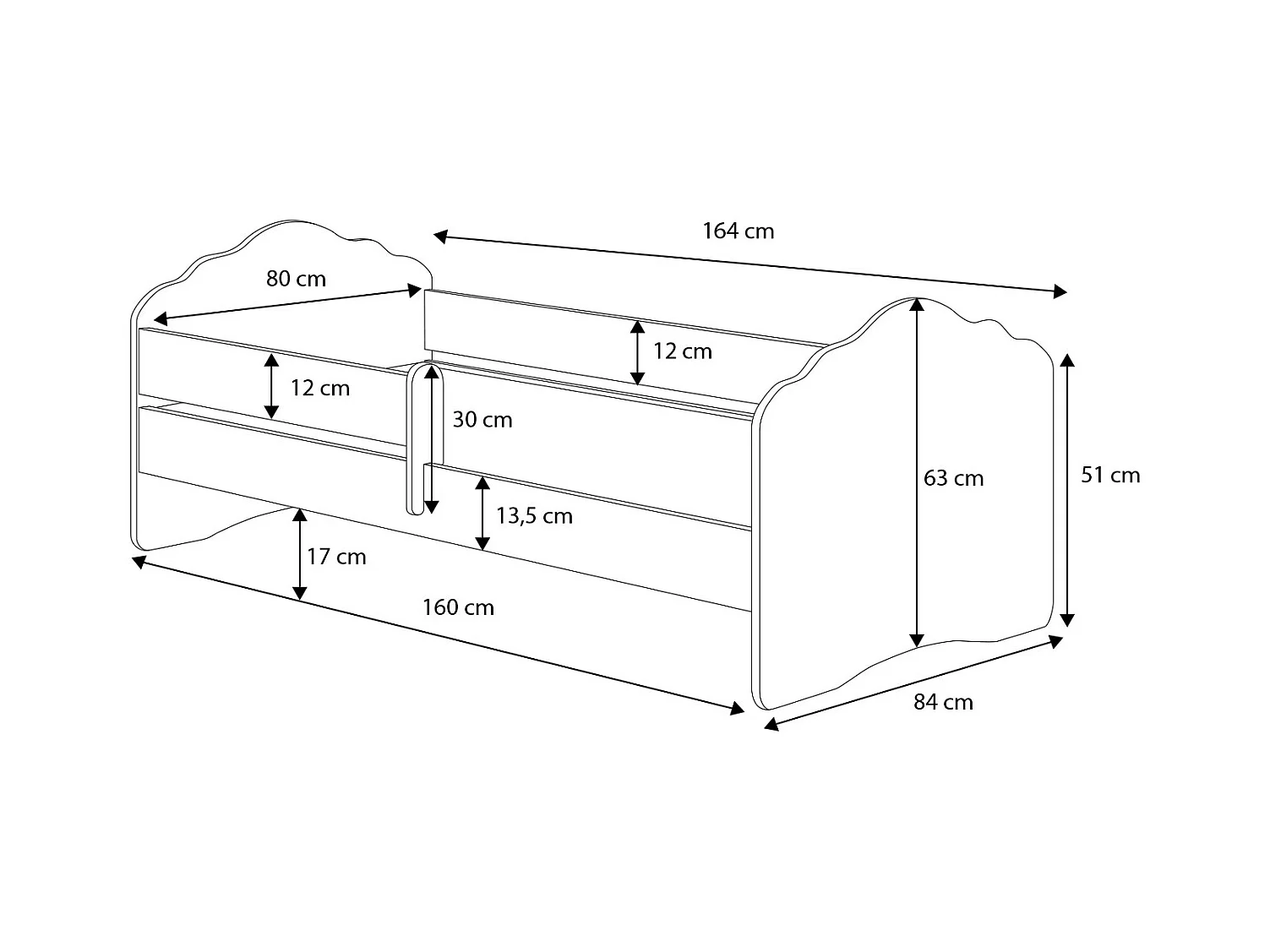 Lit enfant fille FIONA avec tiroir balustrade et matelas inclus - Princesse et licorne roses - 160 cm x 80 cm