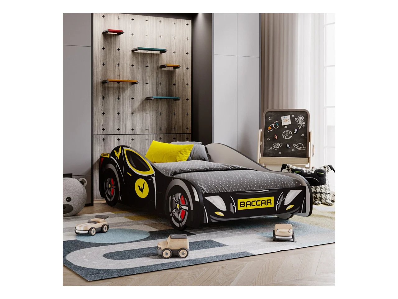 Lit enfant pour garçon Voiture Batman Noir – Design Batcar, Batmobile pour Petits Héros matelas et sommier inclus - 140 cm x 70 cm