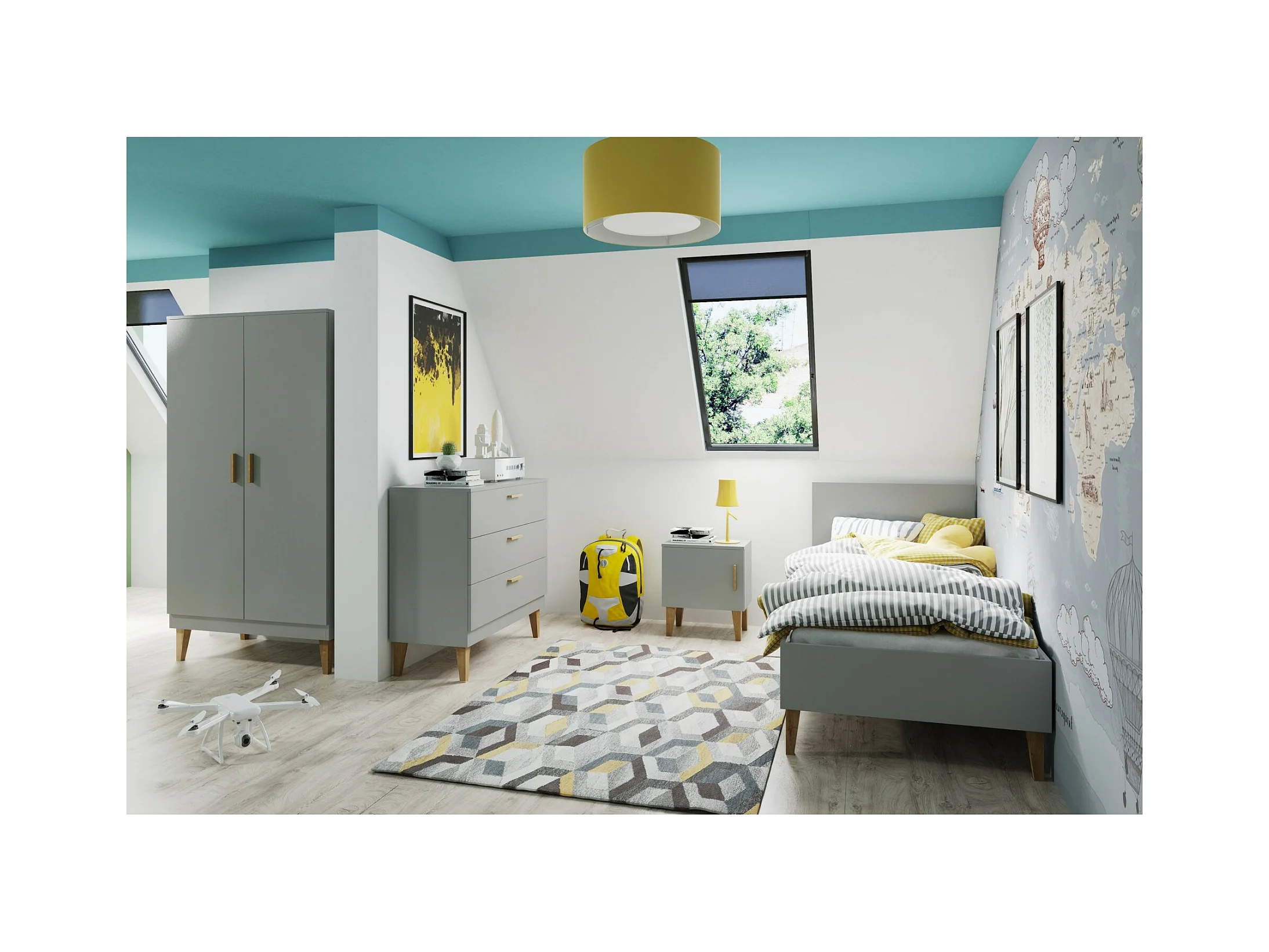 Lit enfant gris avec pieds en bois de chêne Blanka 80x180