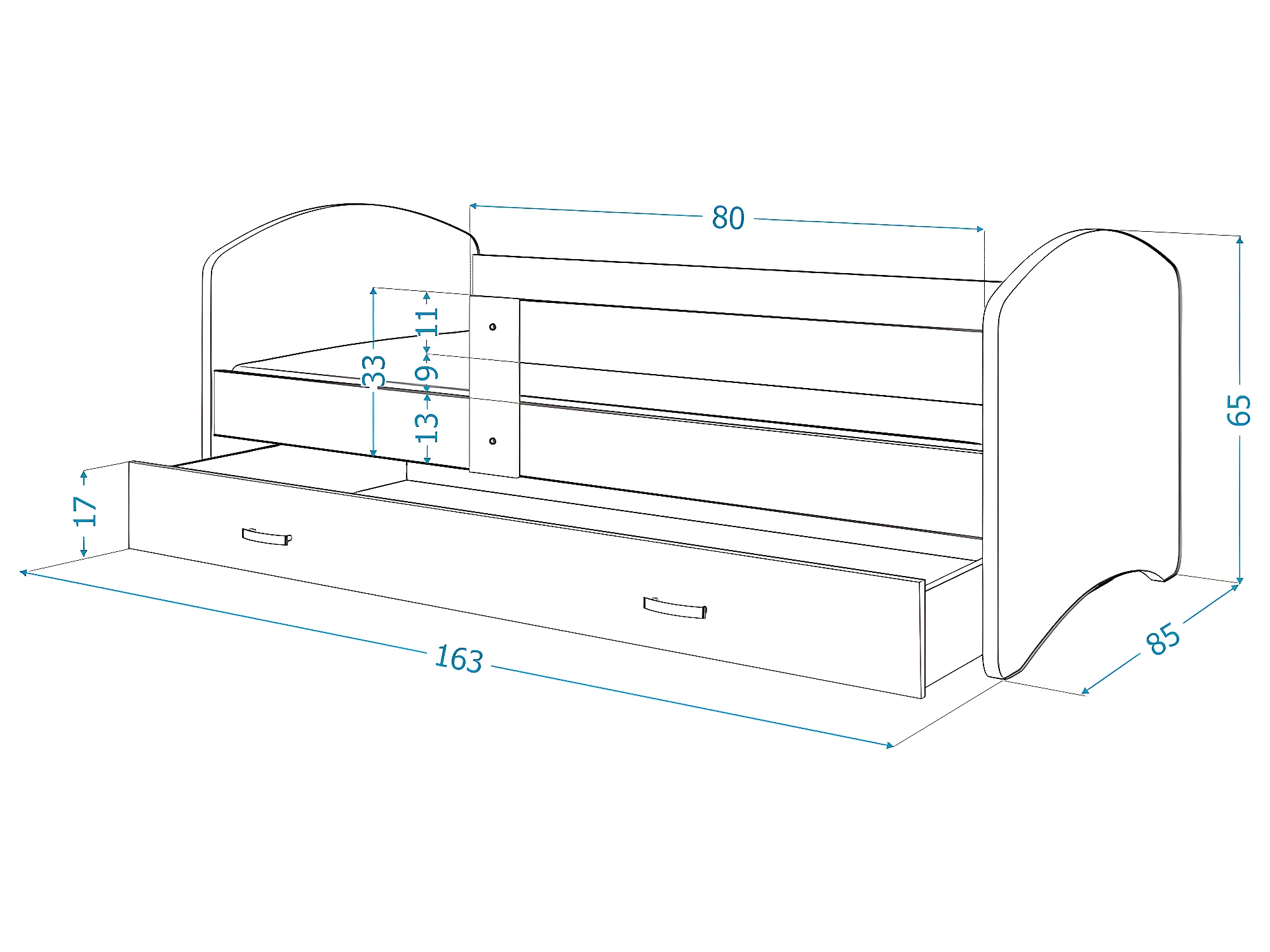 Lit Enfant Happy 80x160 Blanc Livré avec sommiers, tiroir et matelas en mousse de 7cm