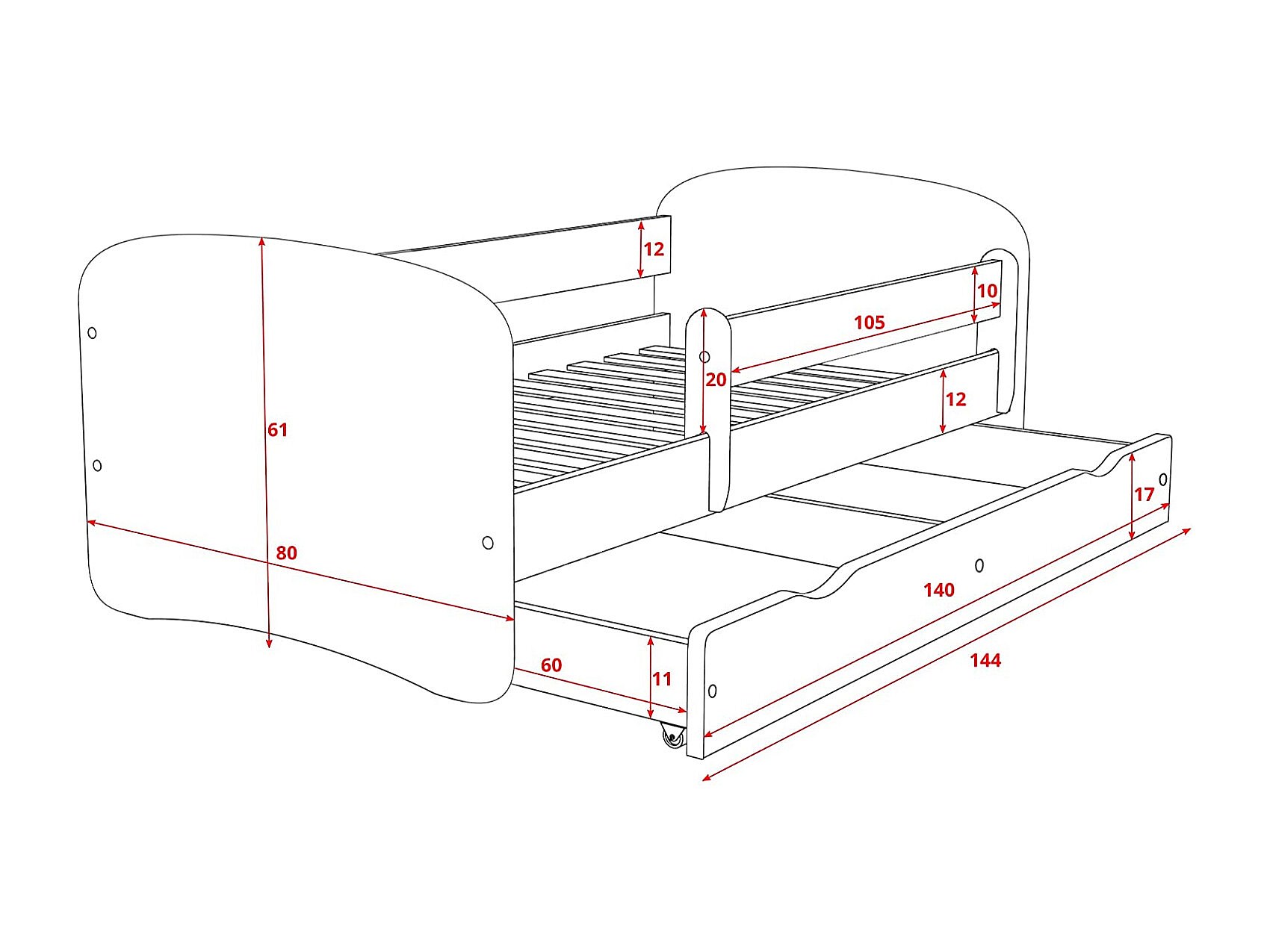 Lit enfant Licorne avec sommiers et barrière de sécurité amovible Drimy-70x140-Tiroirs Avec tiroir