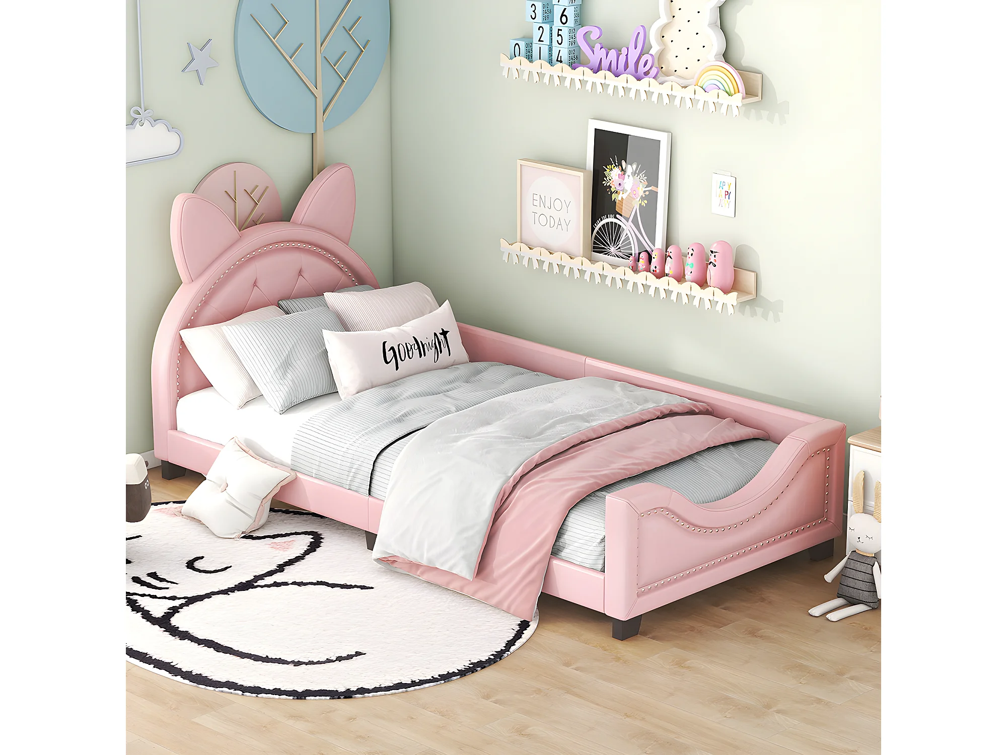 Lit enfant Lit simple 90 x 200 cm - avec dossier rose - Sweiko