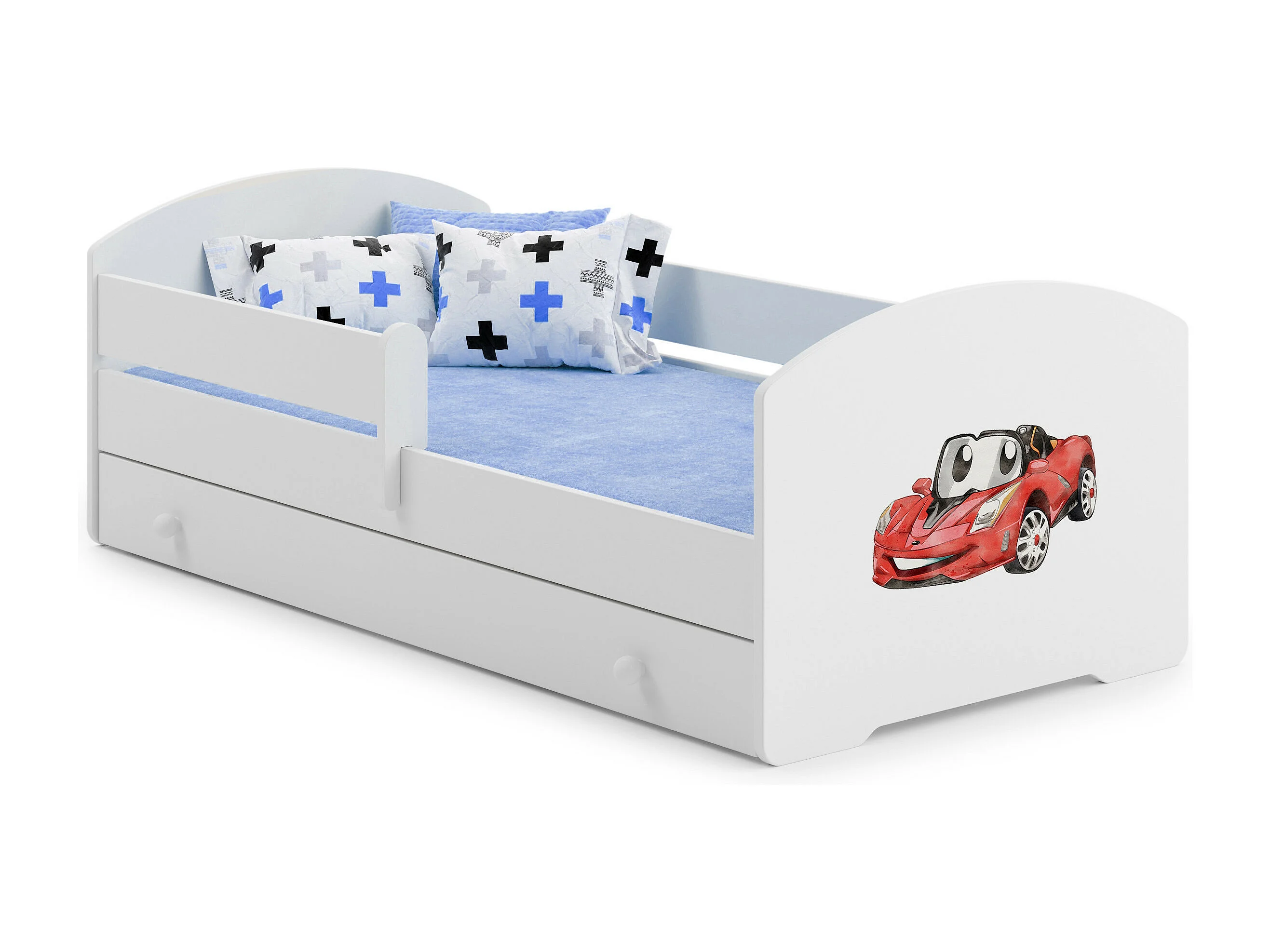 Lit enfant LOU avec tiroir balustrade et matelas inclus - Voiture rouge - 160 cm x 80 cm