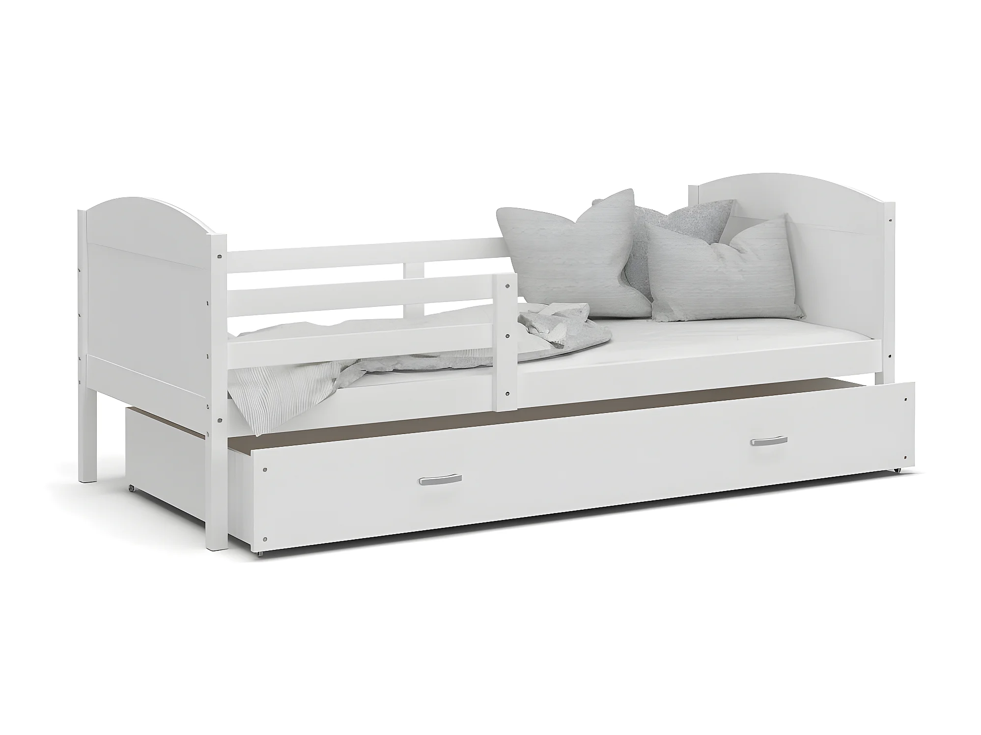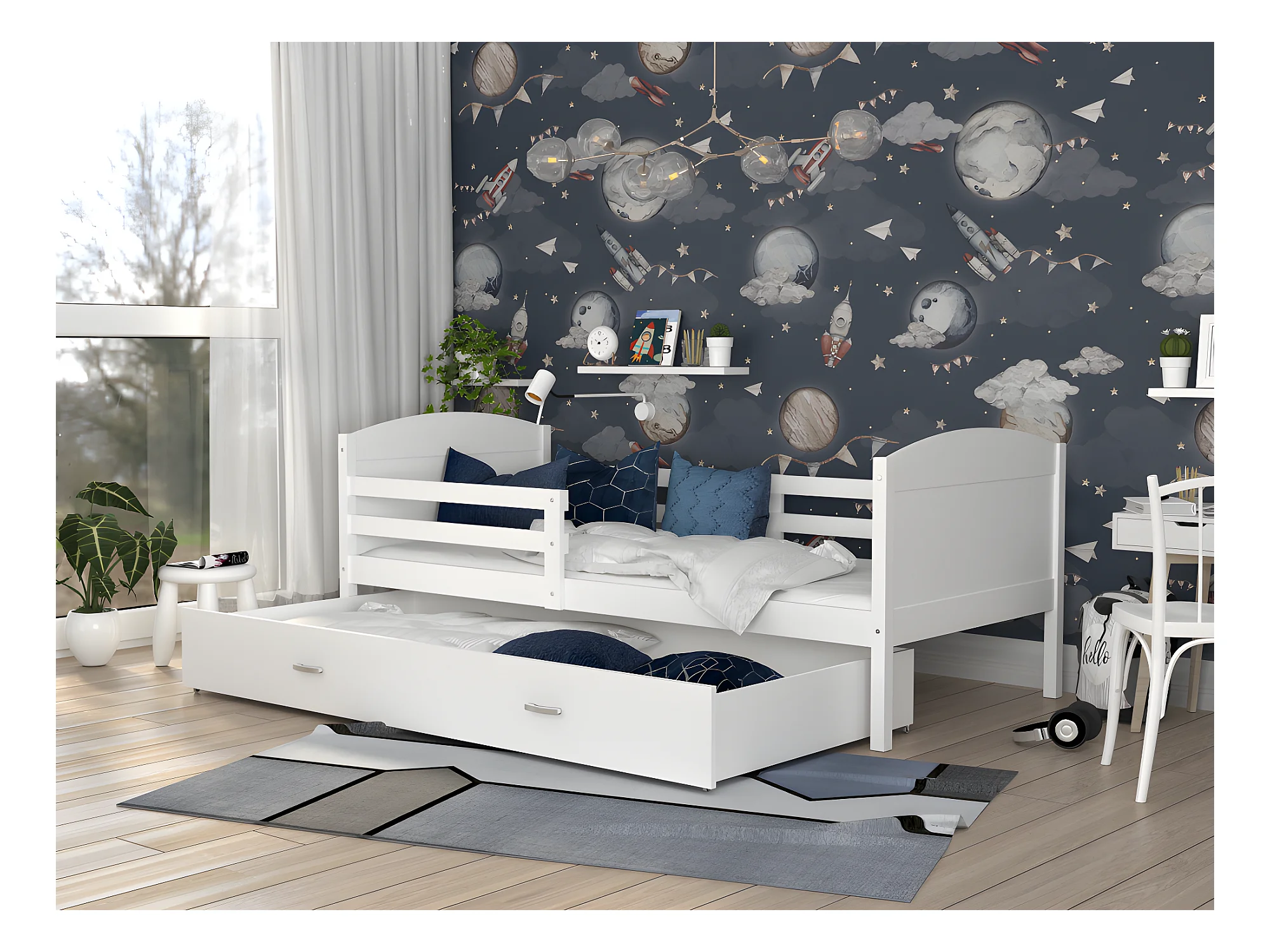 Lit Enfant Mateo 90x190 Blanc - blanc Livré avec sommiers, tiroir et matelas en mousse de 7cm