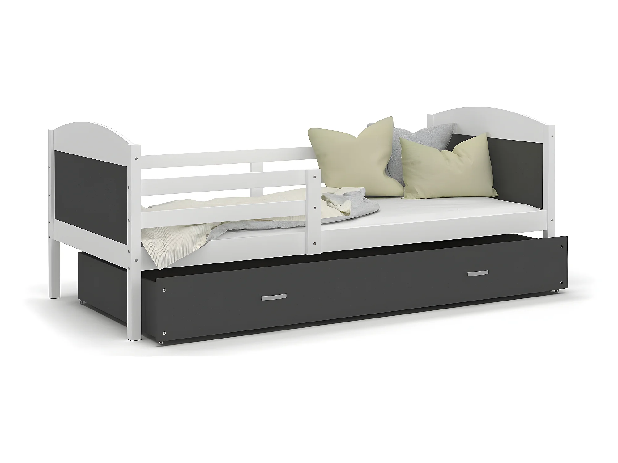 Lit Enfant Mateo 90x190 Blanc - gris Livré avec sommiers, tiroir et matelas en mousse de 7cm
