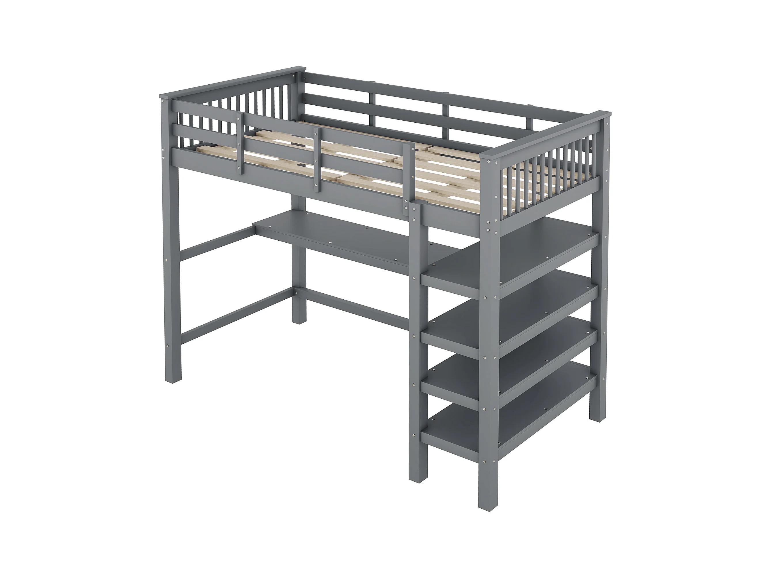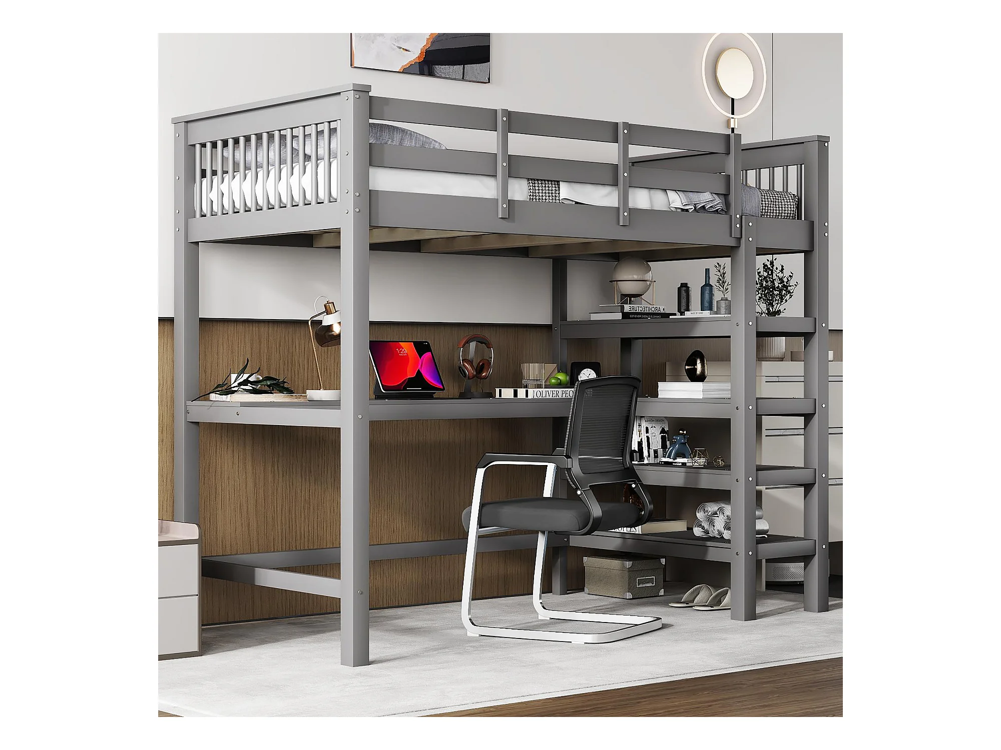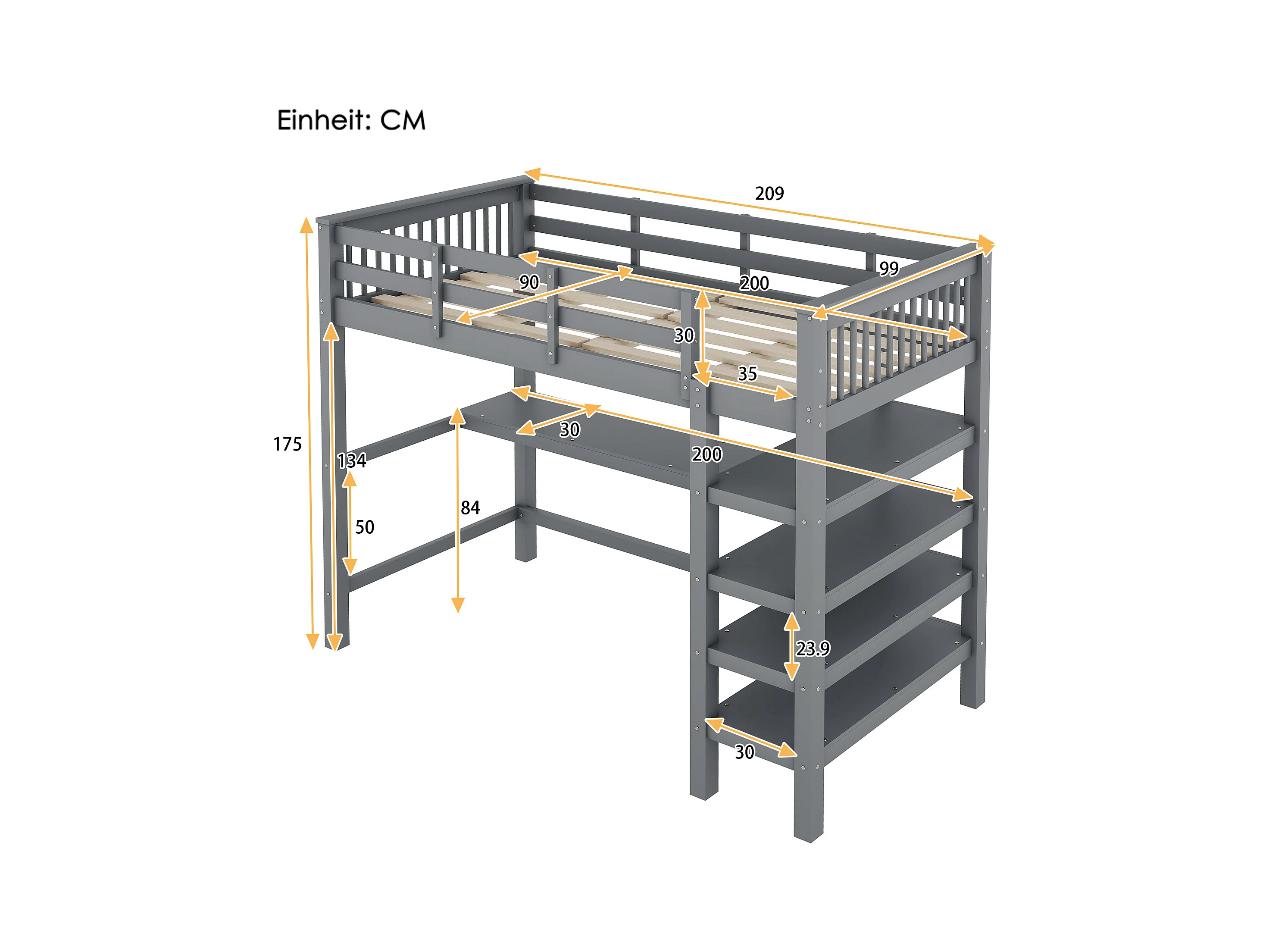 Lit Enfant Mezzanine 90 X 200 cm Avec Rangements - Cadre De Lit Et Bureau Sous Lit - Gris