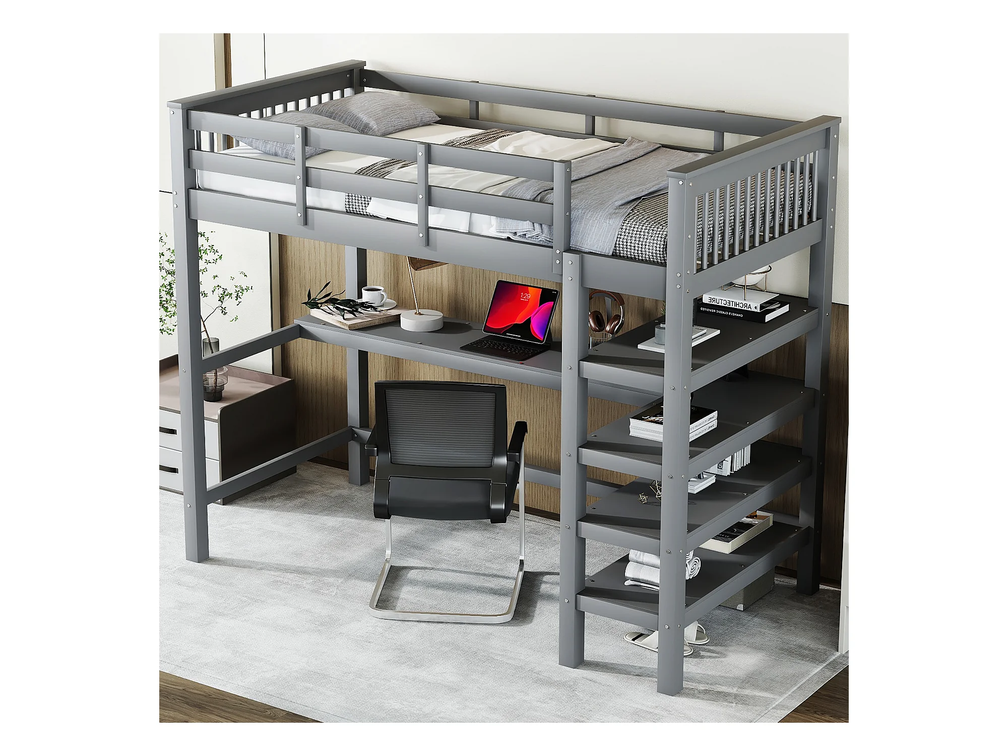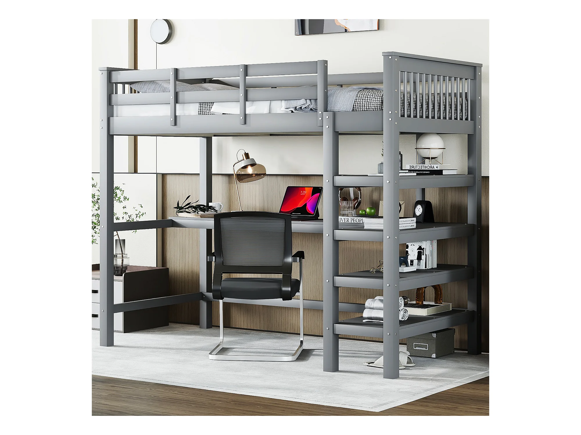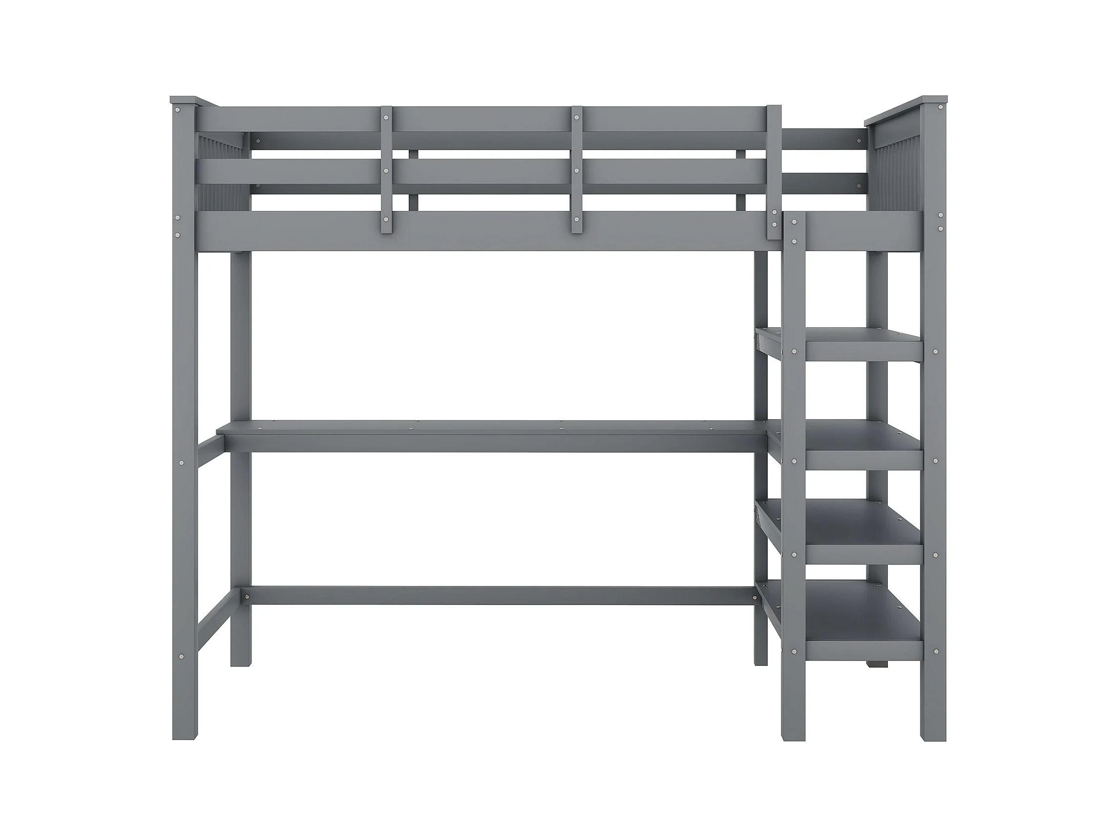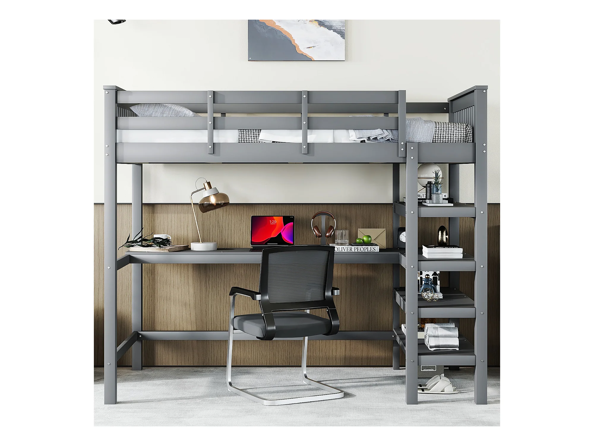 Lit Enfant Mezzanine 90 X 200 cm Avec Rangements - Cadre De Lit Et Bureau Sous Lit - Gris