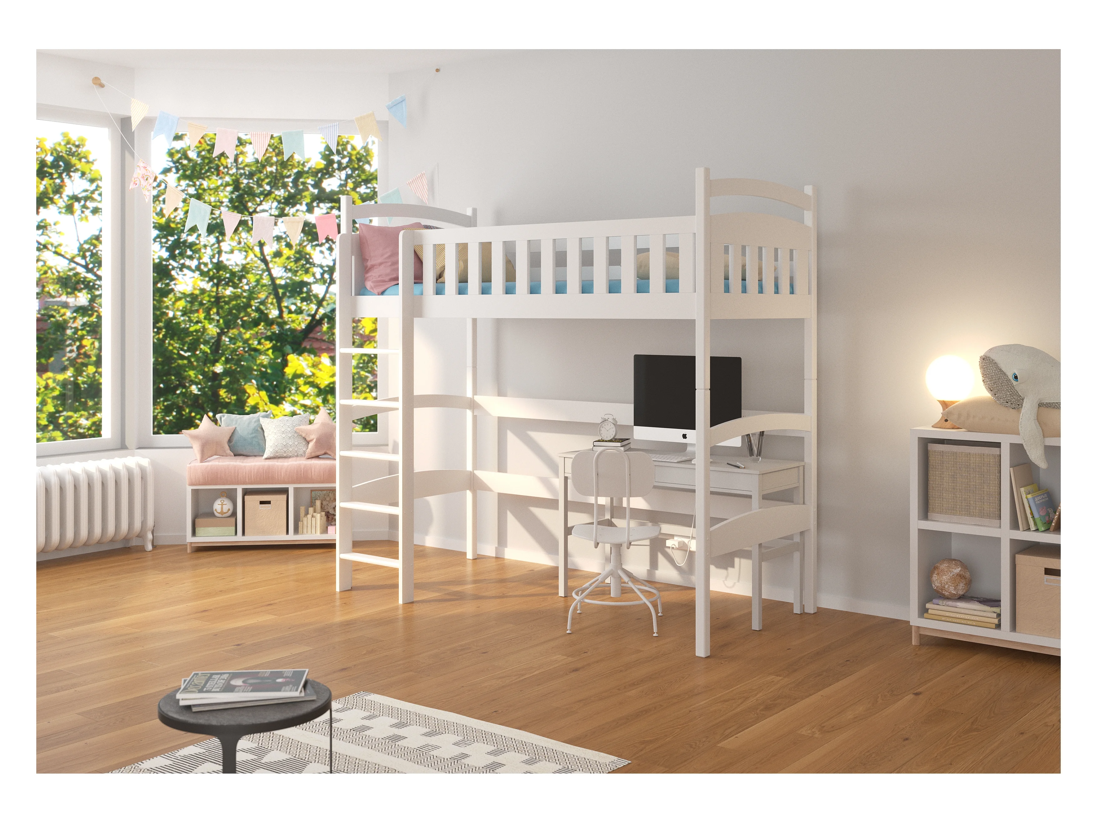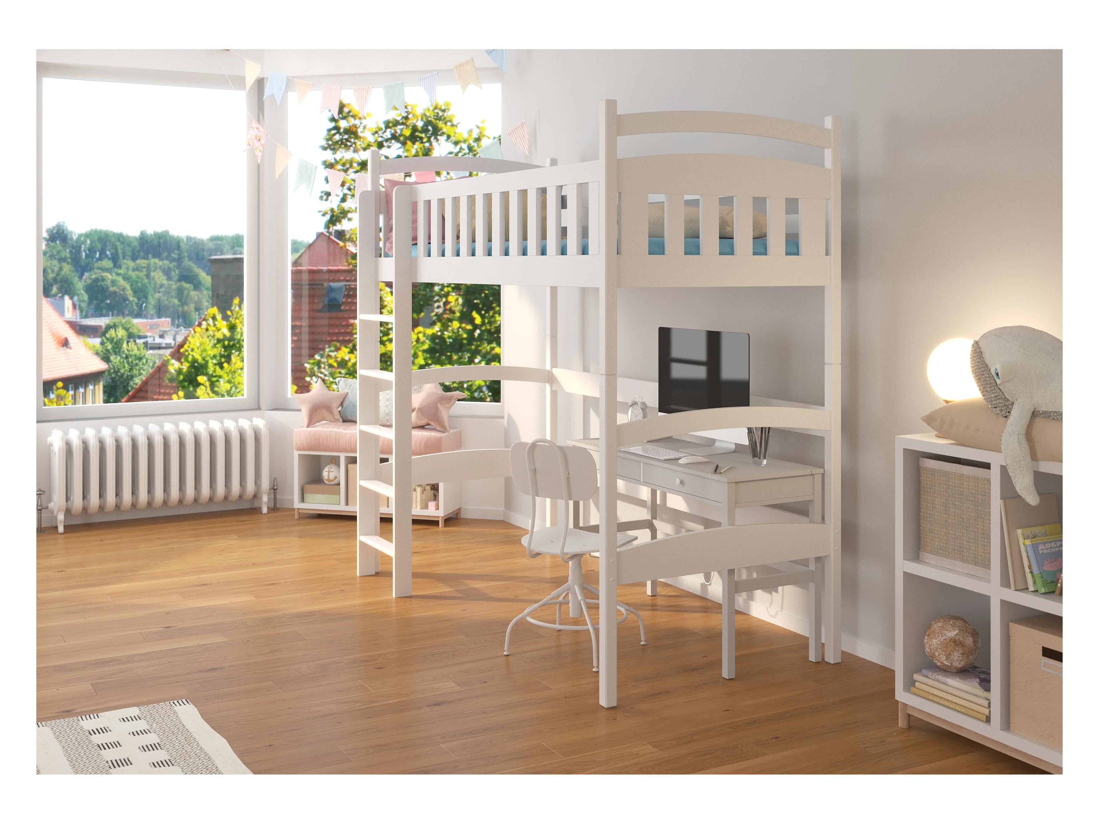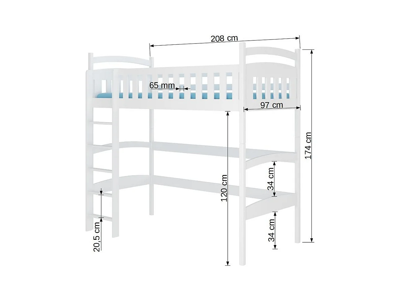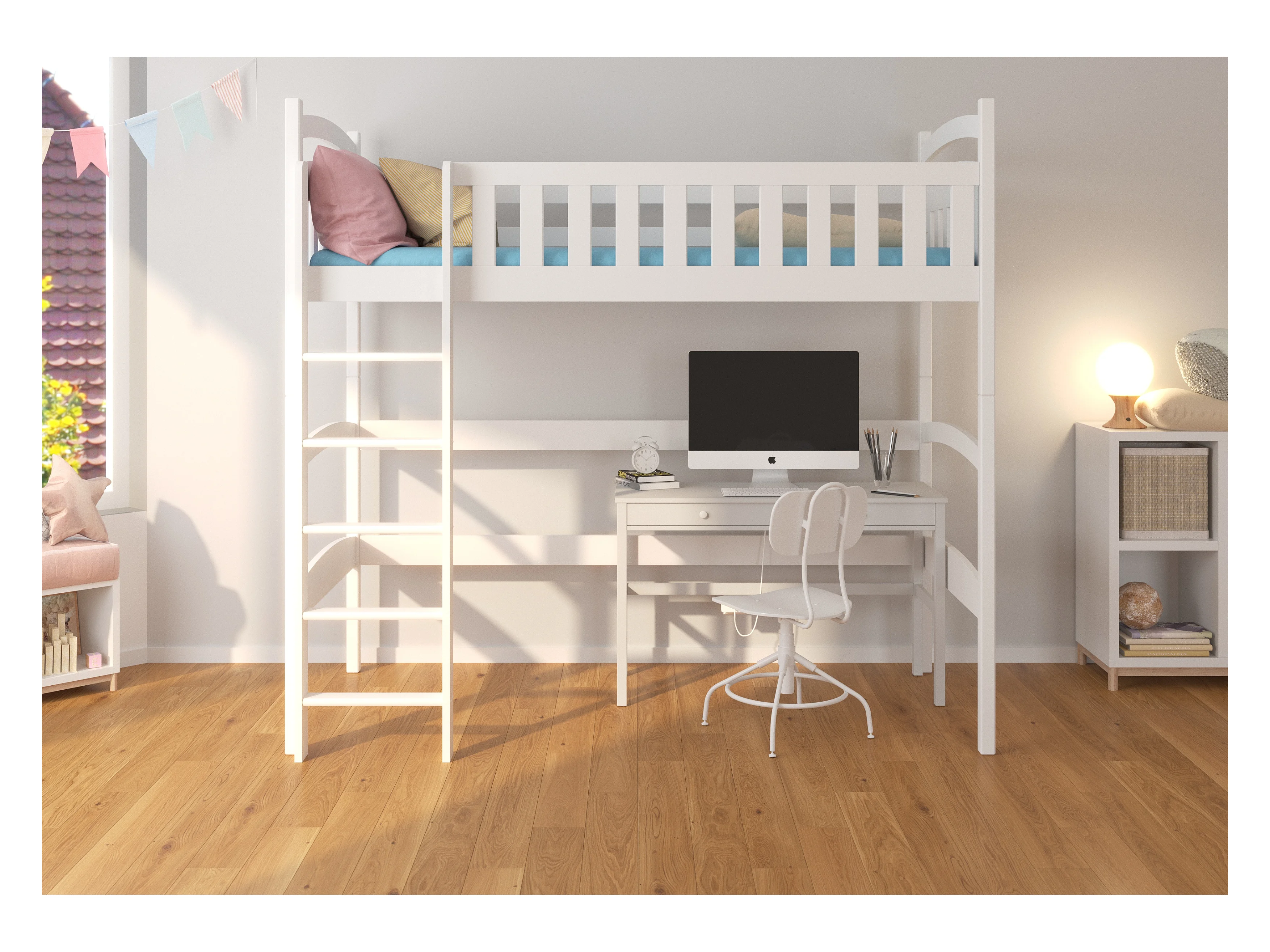 Lit enfant mezzanine bois de pin blanc 90x200 Mikola